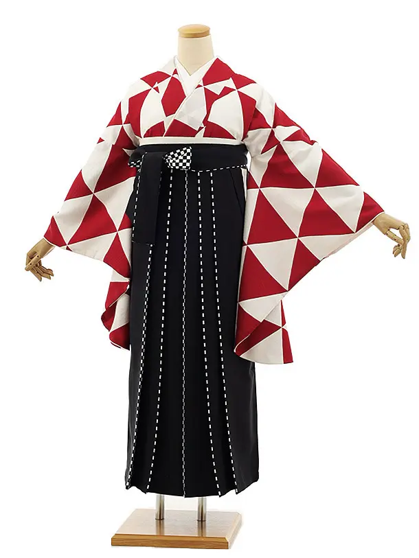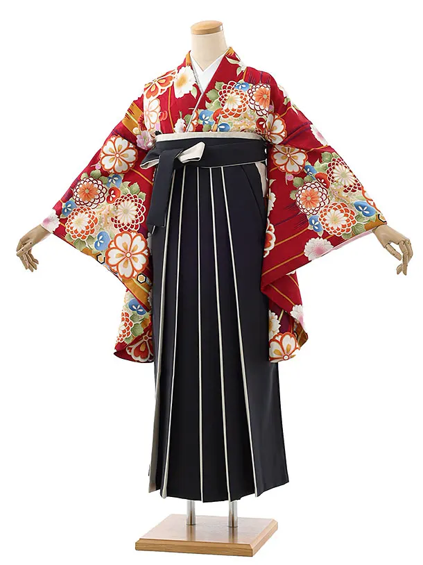 卒業袴レンタルh1016 赤白鱗柄×黒袴