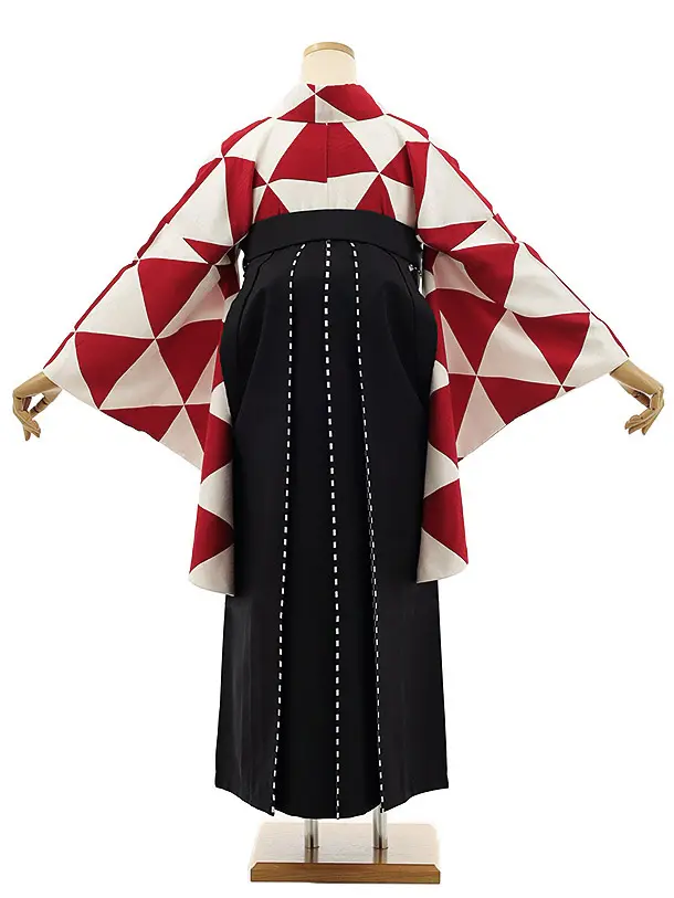 卒業袴レンタルh1017 赤白鱗柄×黒袴