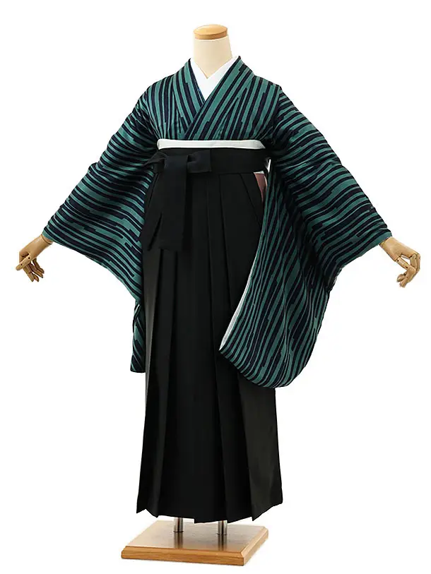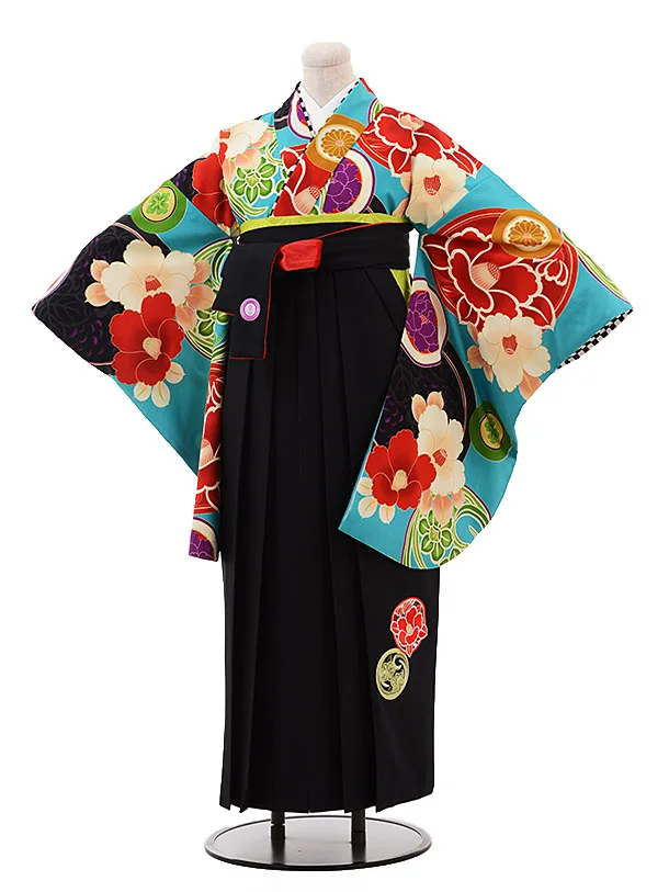 卒業袴レンタルh1020 九重ターコイズ椿×黒赤袴
