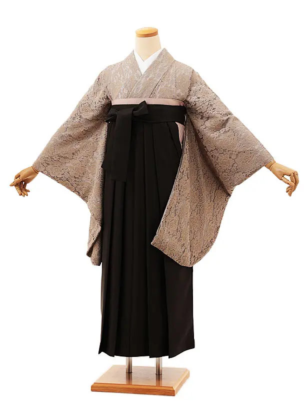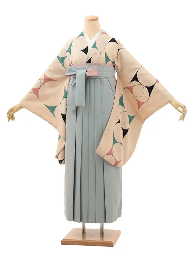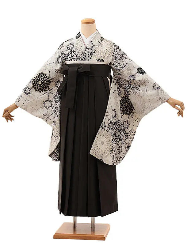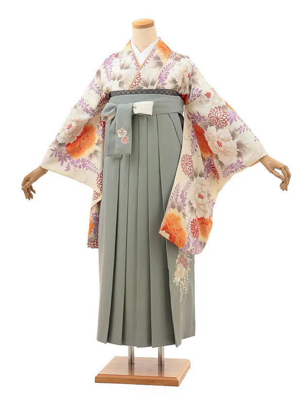卒業袴レンタルh1024 紅一点アイボリー黒矢柄椿×グレー袴