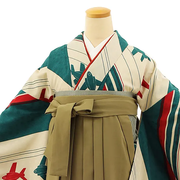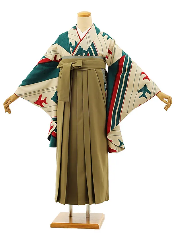卒業袴レンタルh1032 モダンアンテナ飛行機×カーキ袴