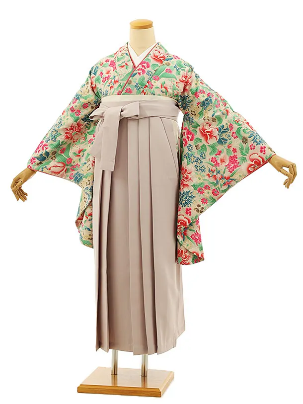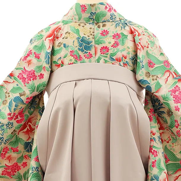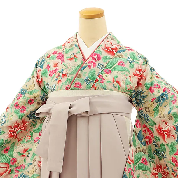 卒業袴レンタルh1039 ベージュ花×くすみピンク袴