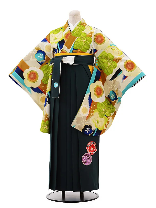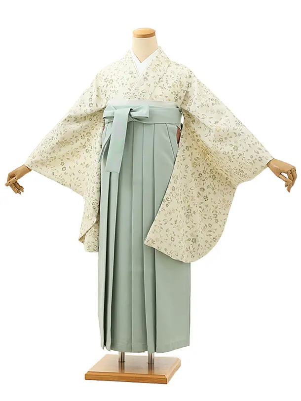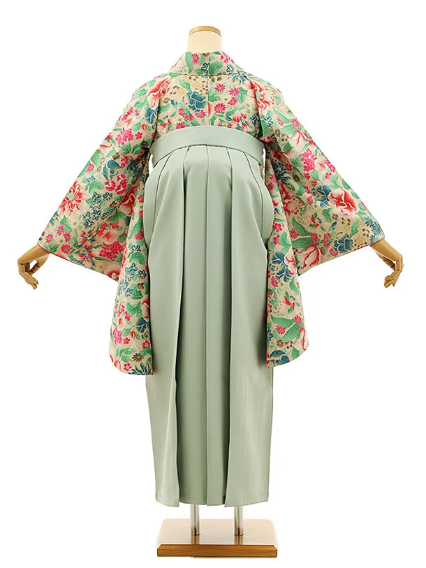 卒業袴レンタルh1042 ベージュ花×くすみグリーン袴