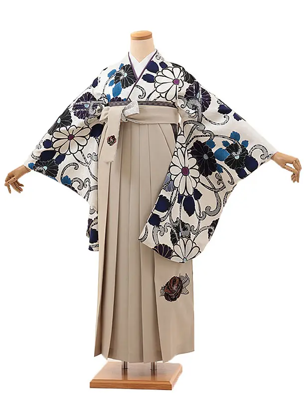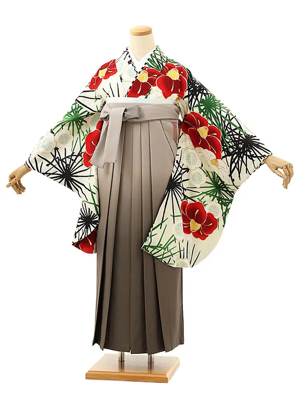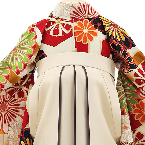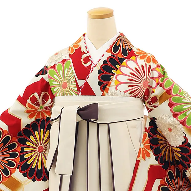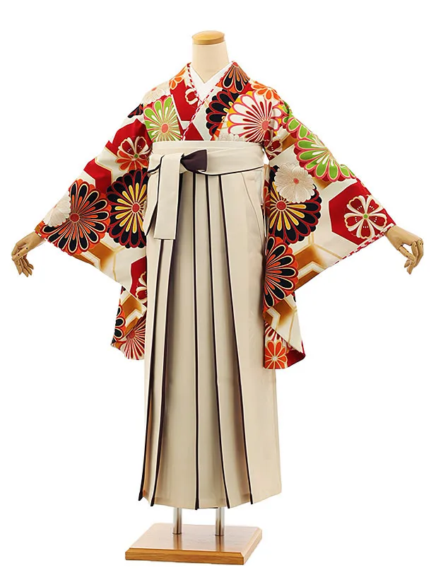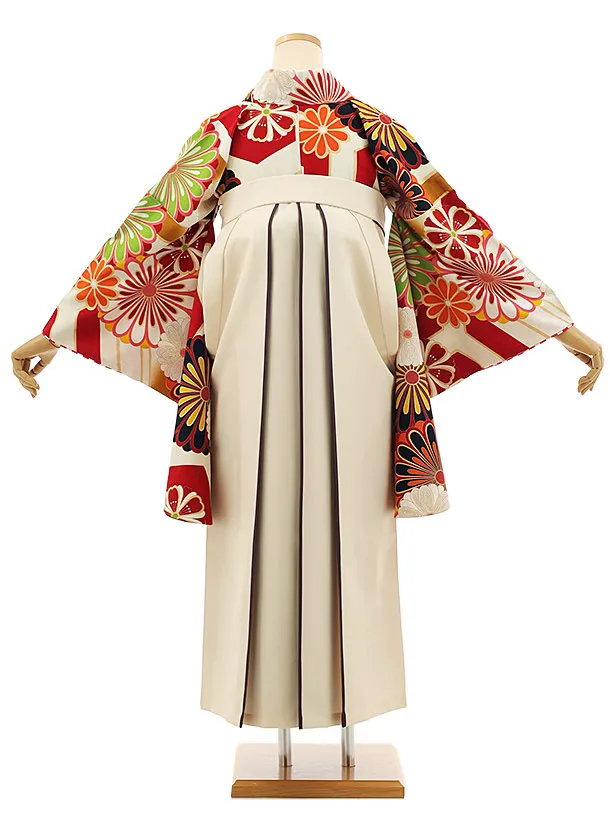卒業袴レンタルh1050 ジャパンスタイル赤白菊×アイボリー袴