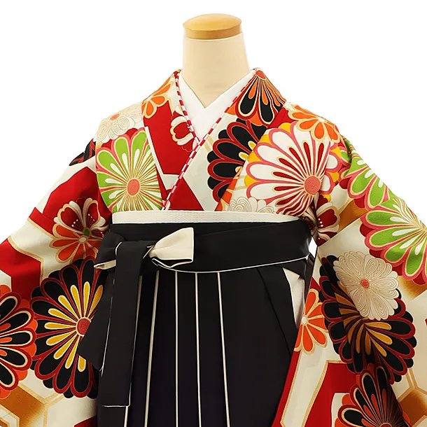 卒業袴レンタルh1052 ジャパンスタイル赤白菊×黒袴