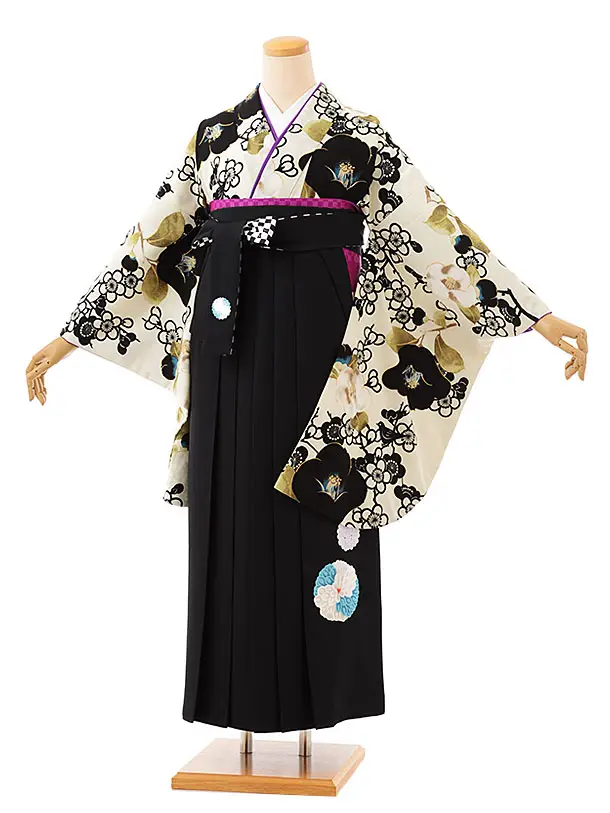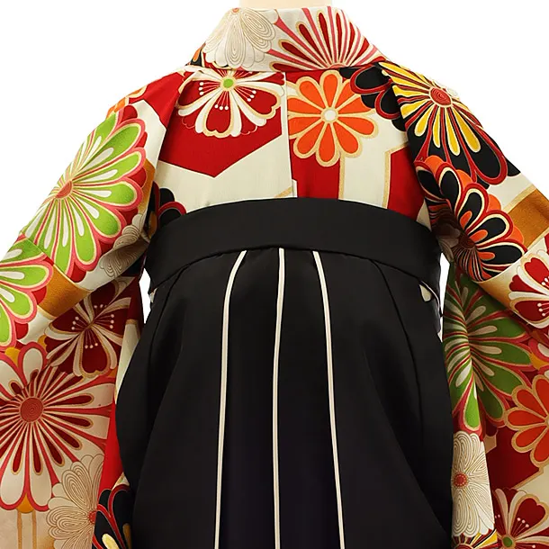 卒業袴レンタルh1053 ジャパンスタイル赤白菊×黒袴