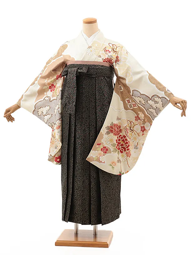 卒業袴レンタルh1055 モダンアンテナ三角ドット×黒袴