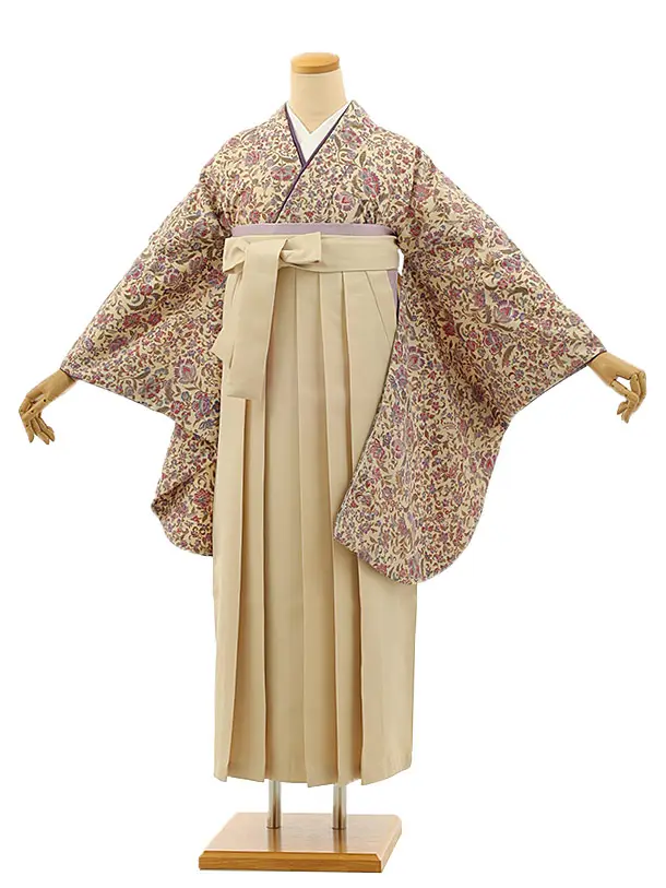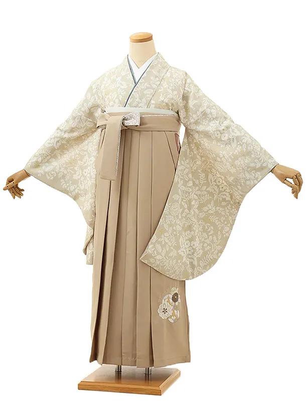 卒業袴レンタルh1077 アイボリー更紗×アイボリー袴