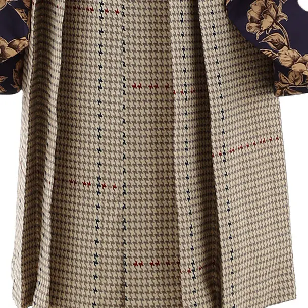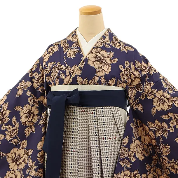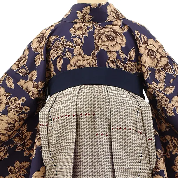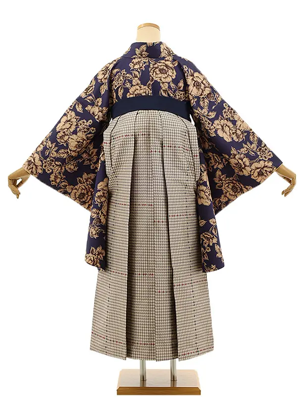 卒業袴レンタルh1078 ラフィネモカ紺花×グレー千鳥格子袴