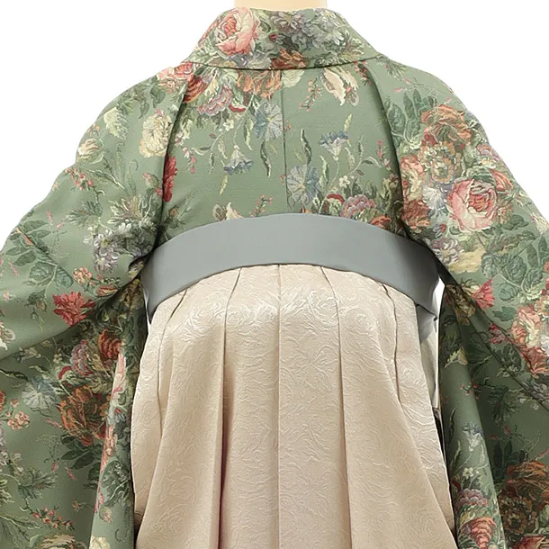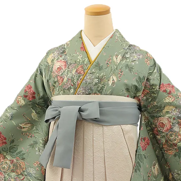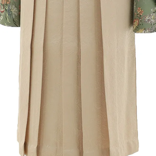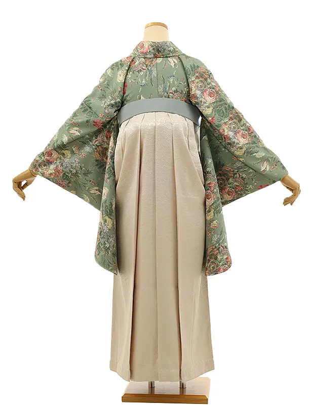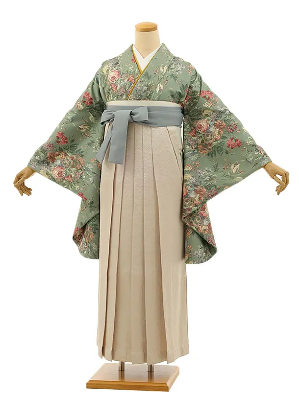 卒業袴レンタルh1083 ラフィネモカグリーンゴブラン柄×ピンクベージュ袴