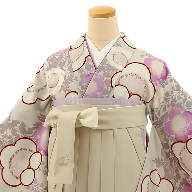 卒業袴レンタルh1088 Kansai グレー地梅×グレージュ袴