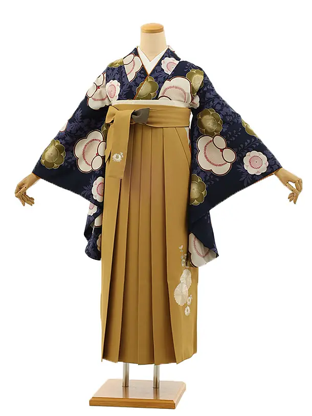 卒業袴レンタルh1089 Kansai 紺地梅×からし袴