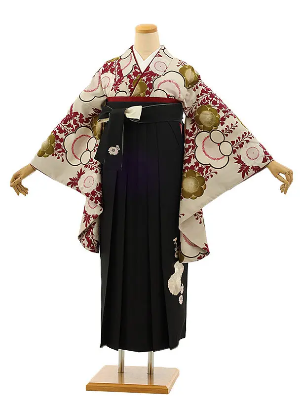 卒業袴レンタルh1094 Kansai ベージュ梅×黒袴