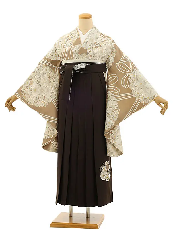 卒業袴レンタルh1099 モカ茶薬玉×ブラウン袴