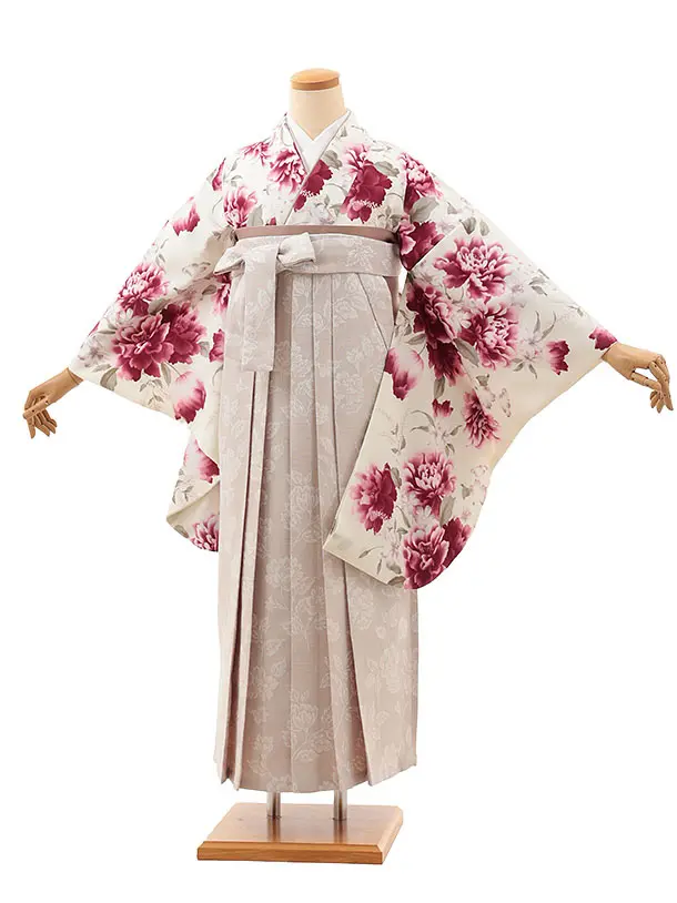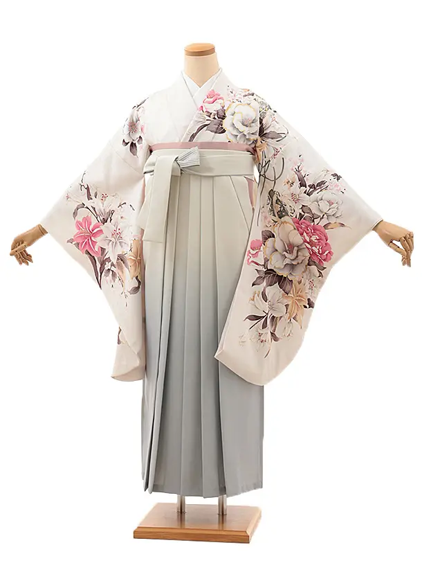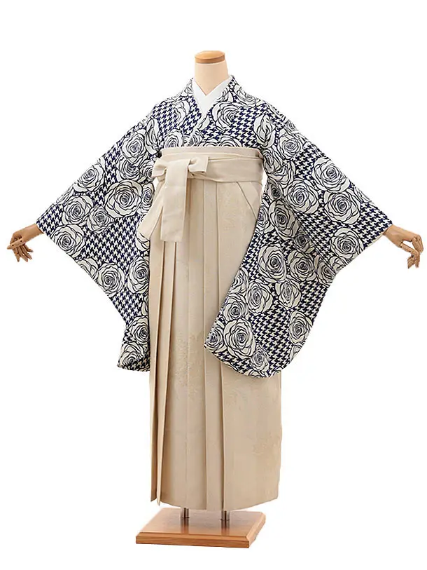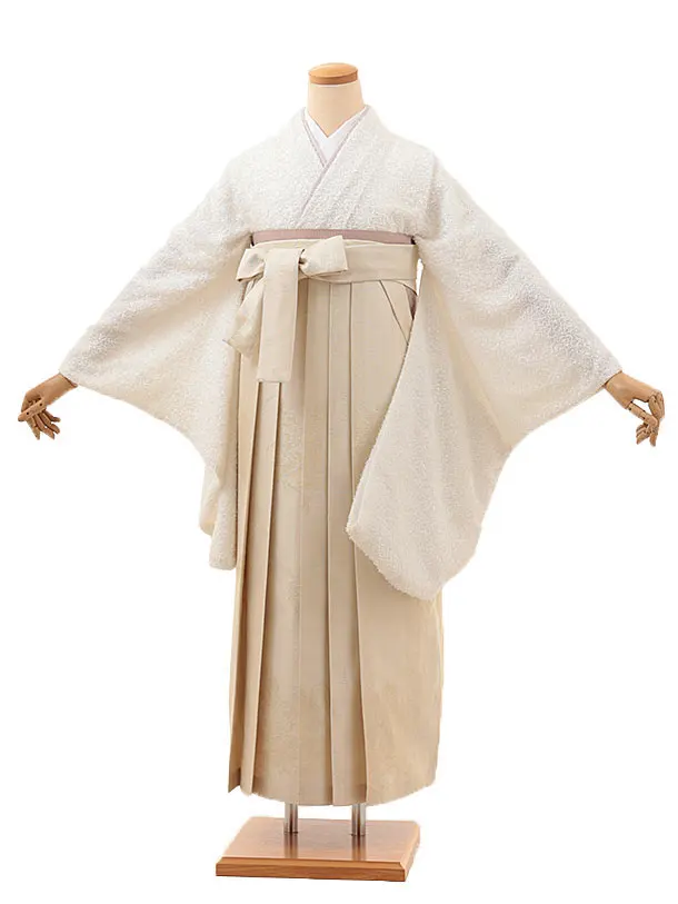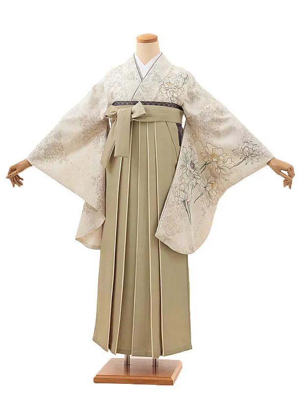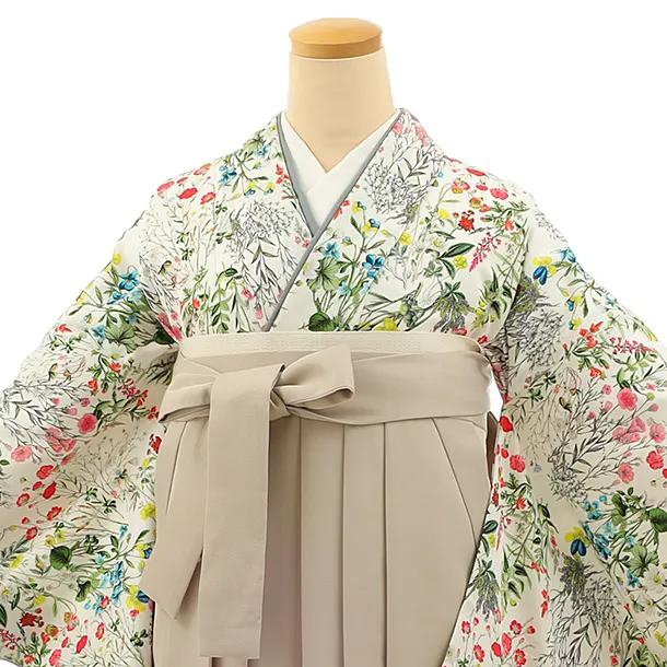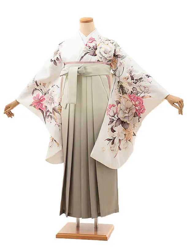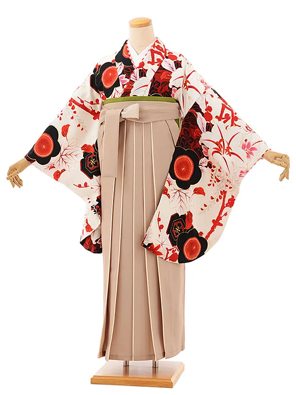 卒業袴レンタルh1106 白地小花×ベージュ袴