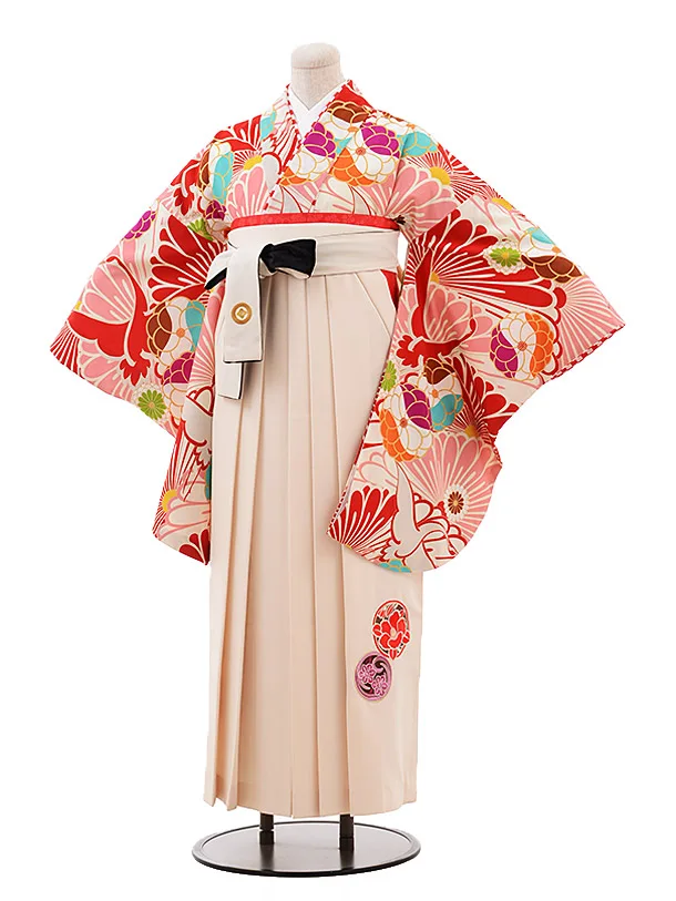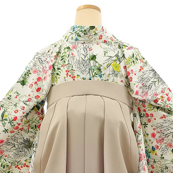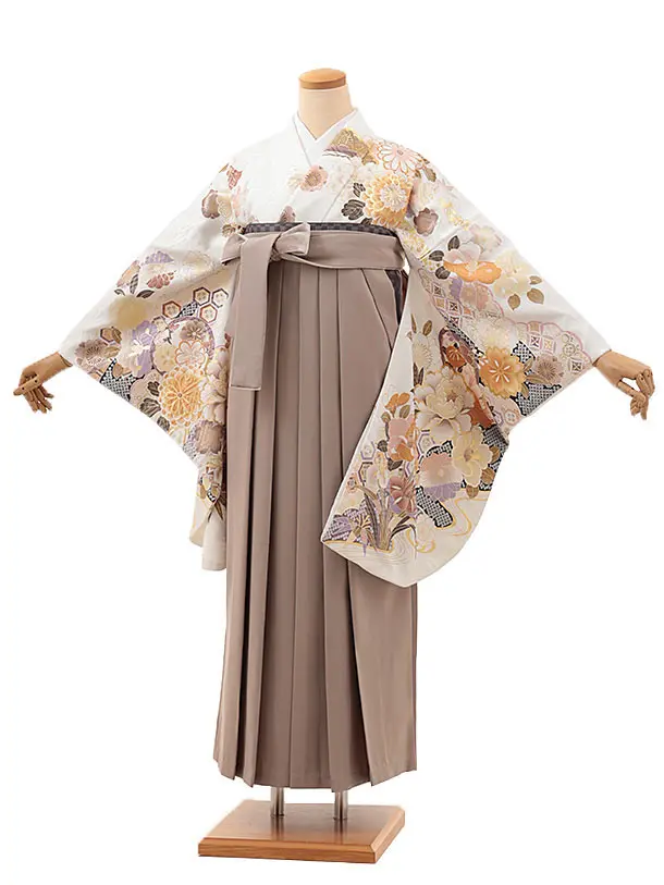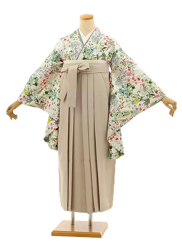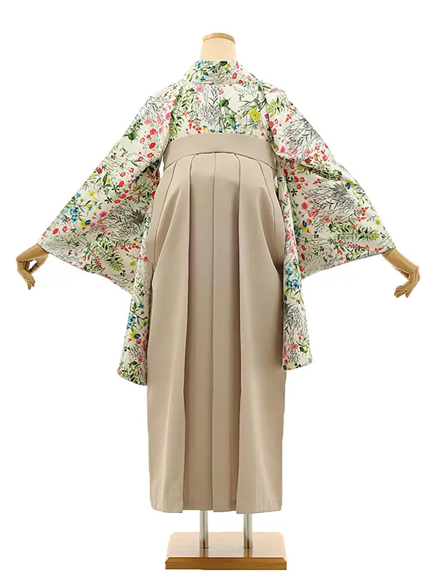 卒業袴レンタルh1107 白地小花×ベージュ袴