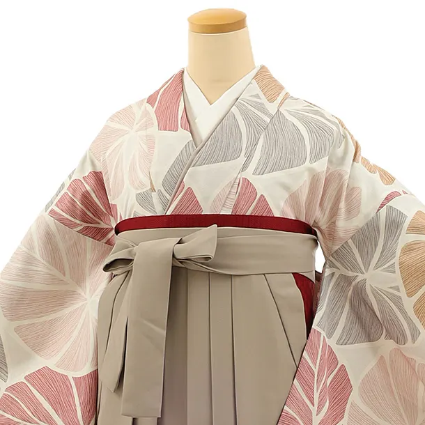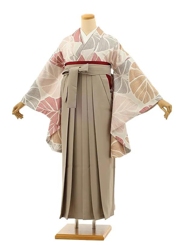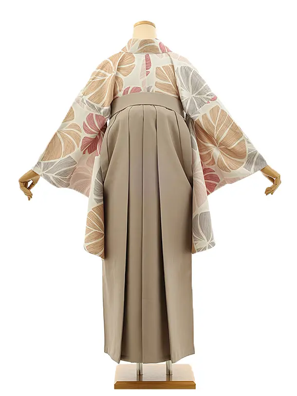 卒業袴レンタルh1109 ベージュモンステラ×ベージュ袴