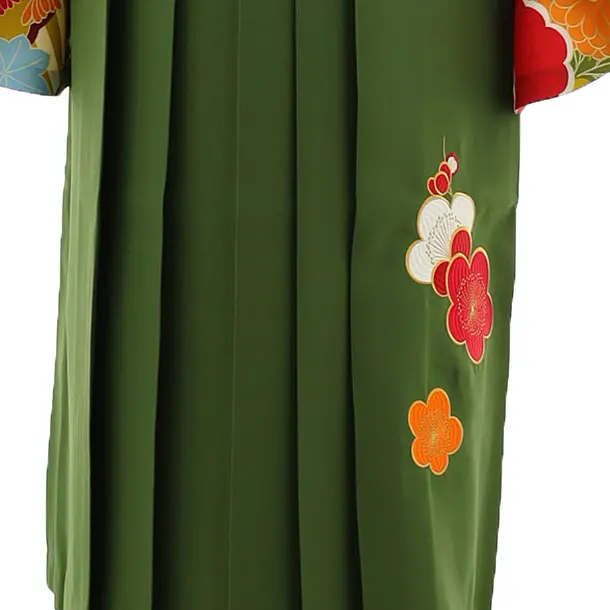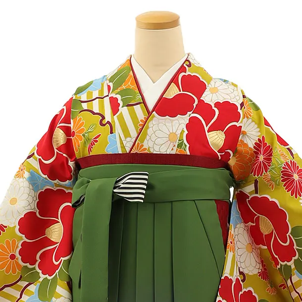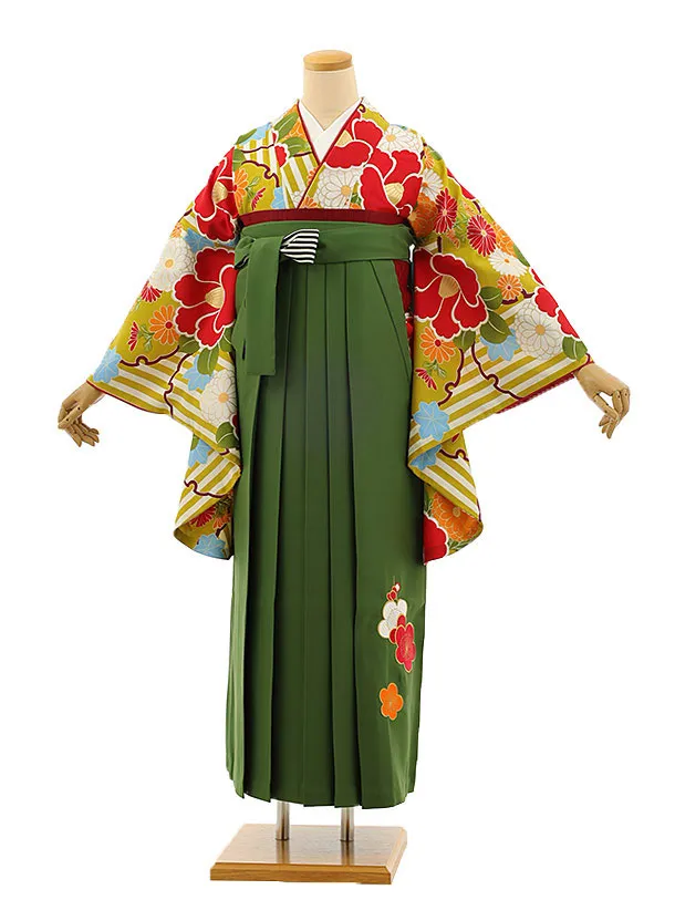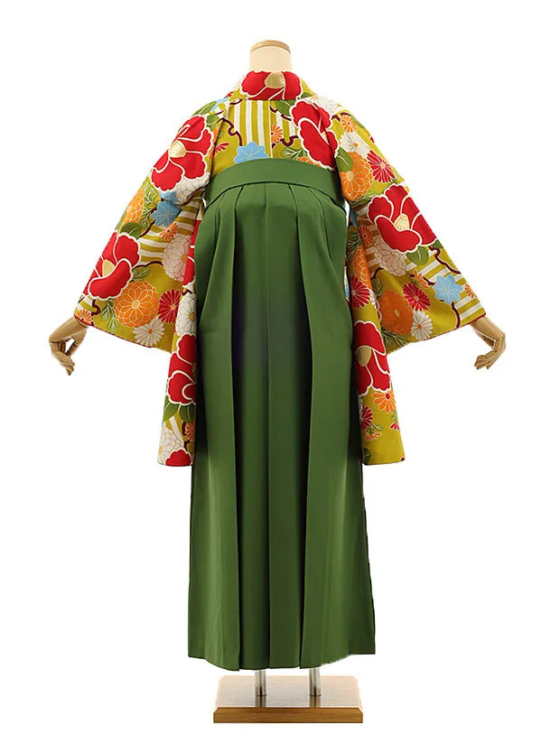 卒業袴レンタルh1112 からしストライプ椿×グリーン袴