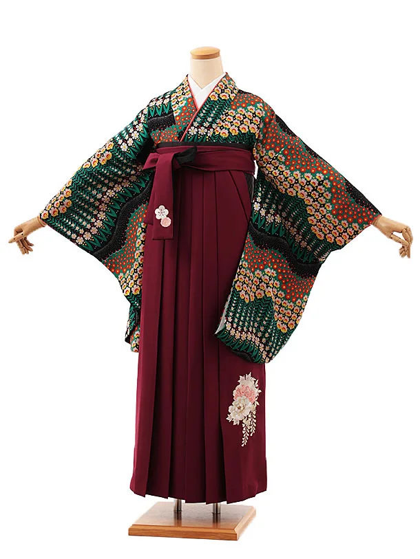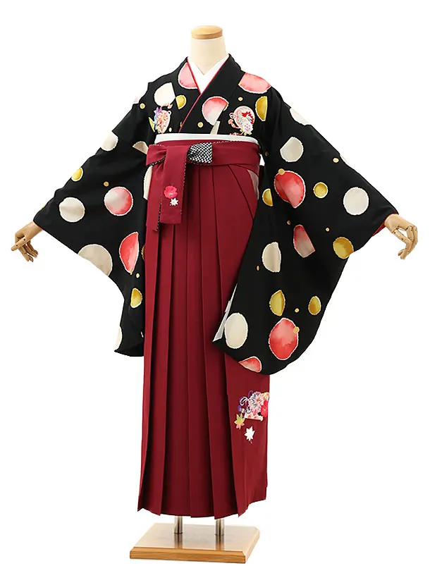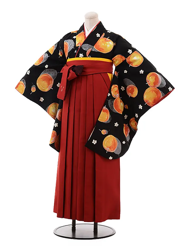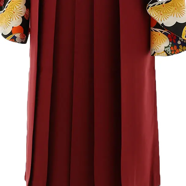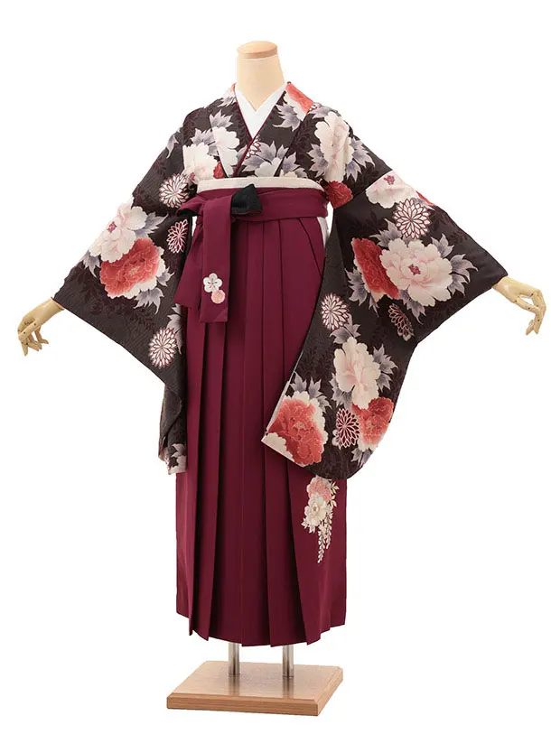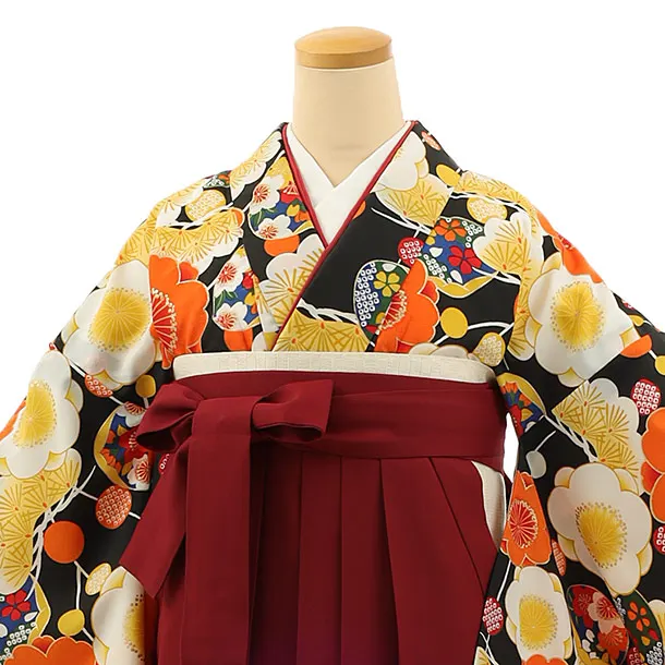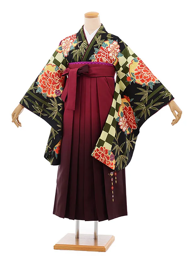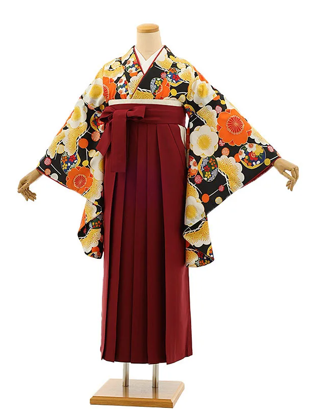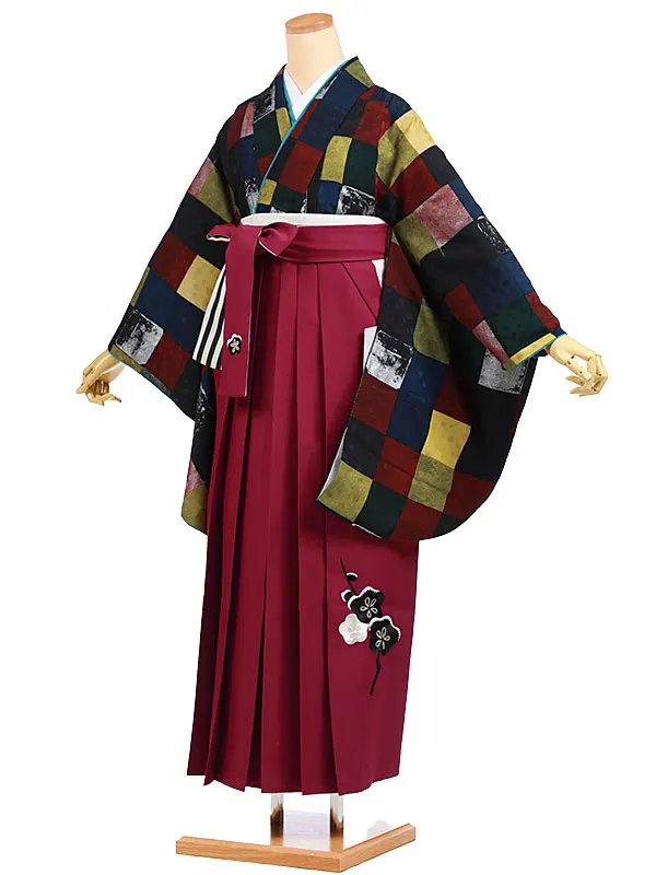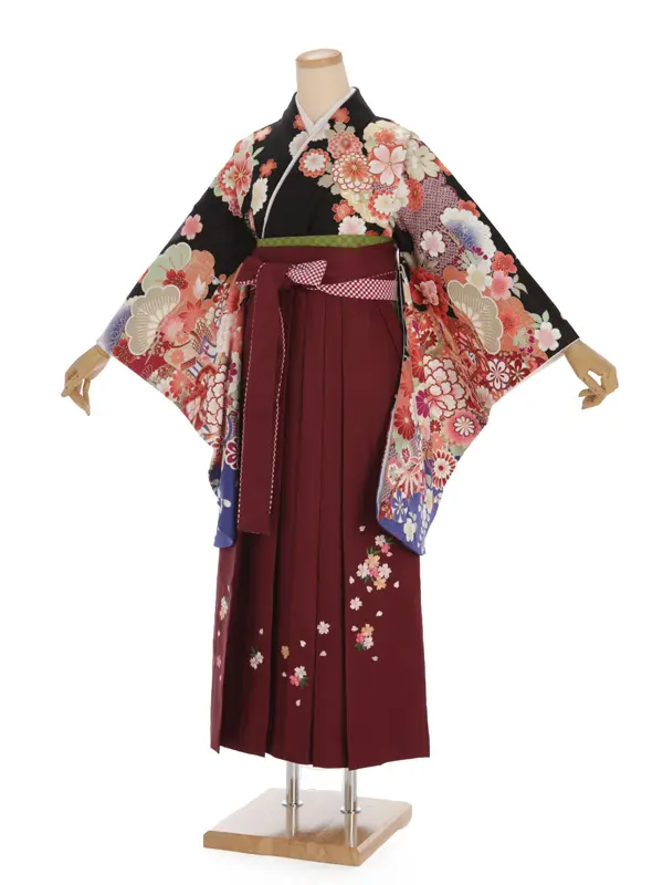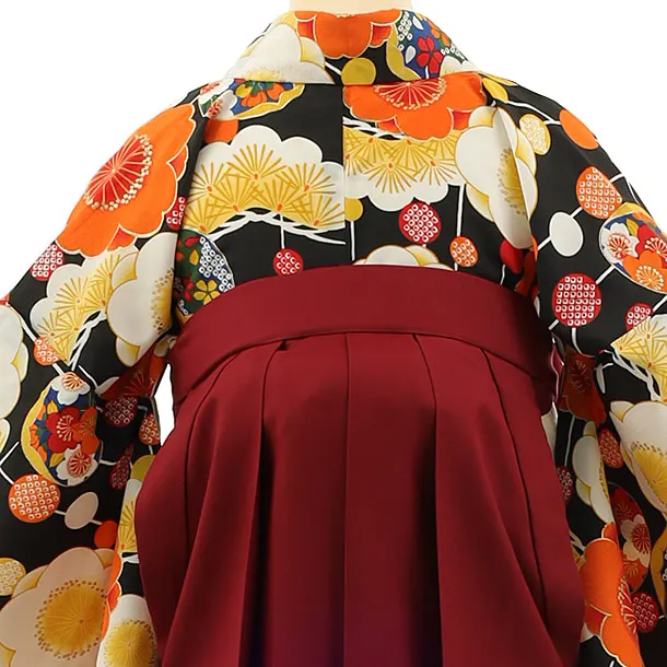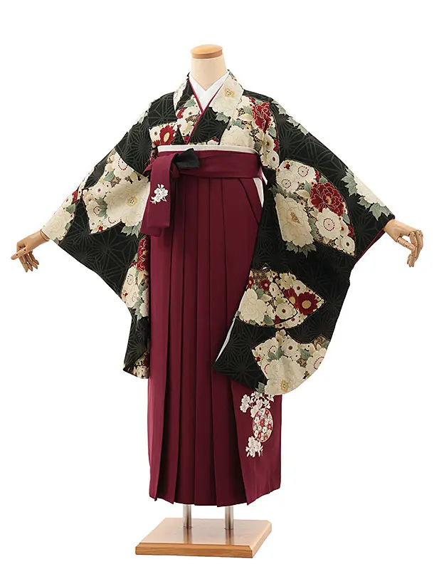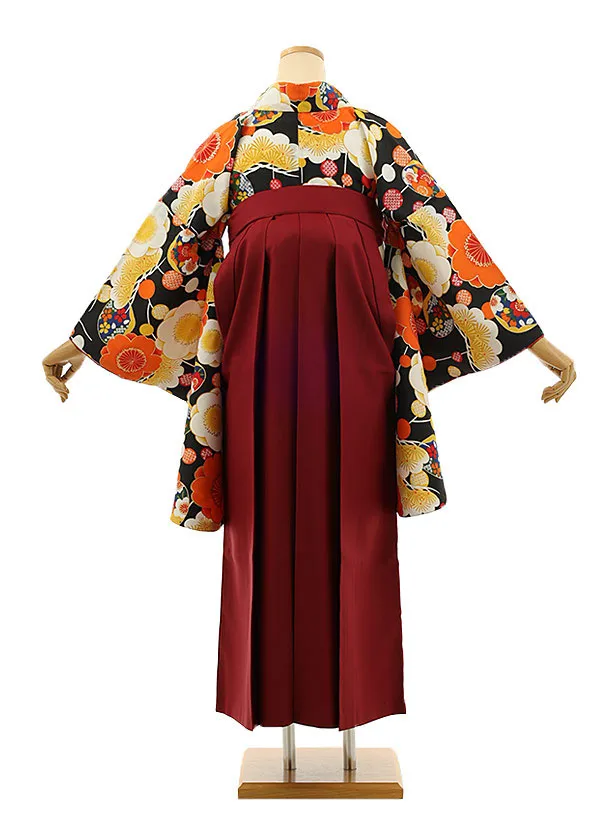 卒業袴レンタルh1113 黒地梅松×エンジ袴
