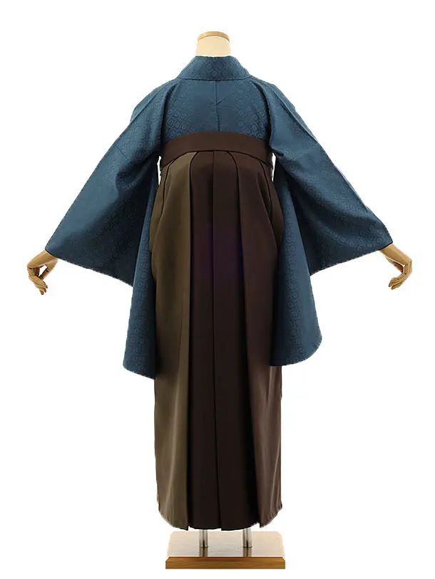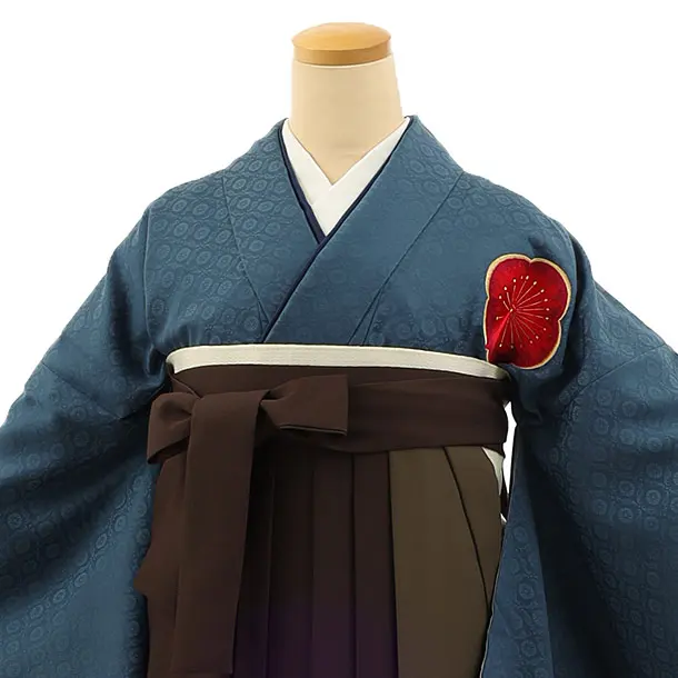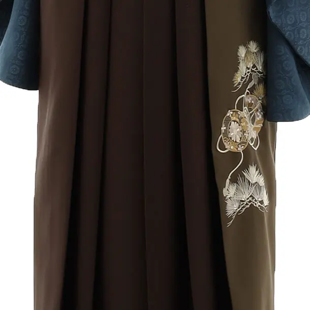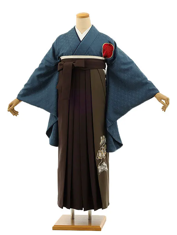 卒業袴レンタルh1118 ブルー 梅 刺繍×茶モスグリーン袴