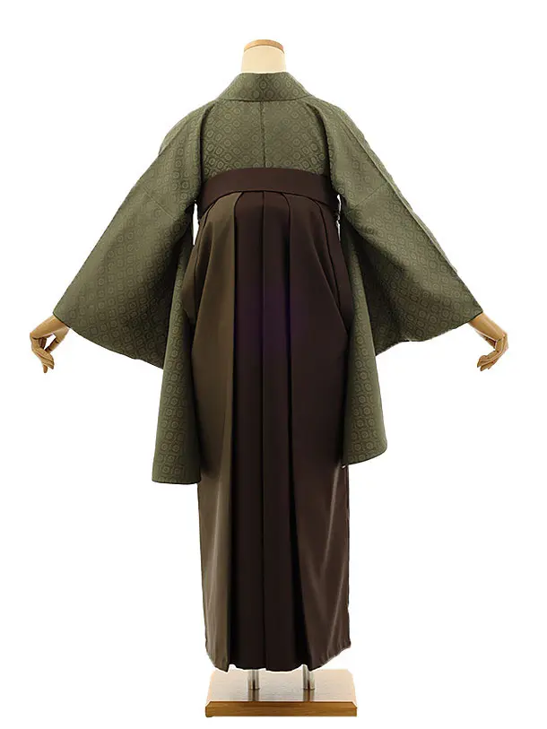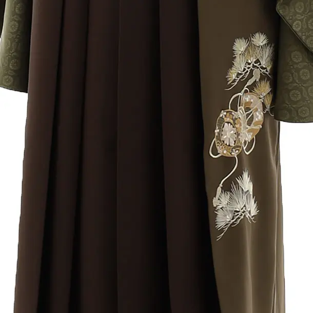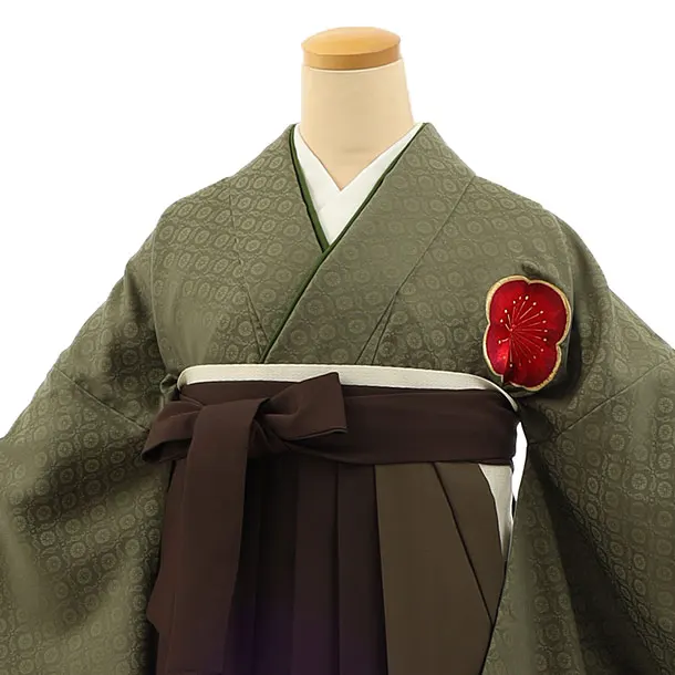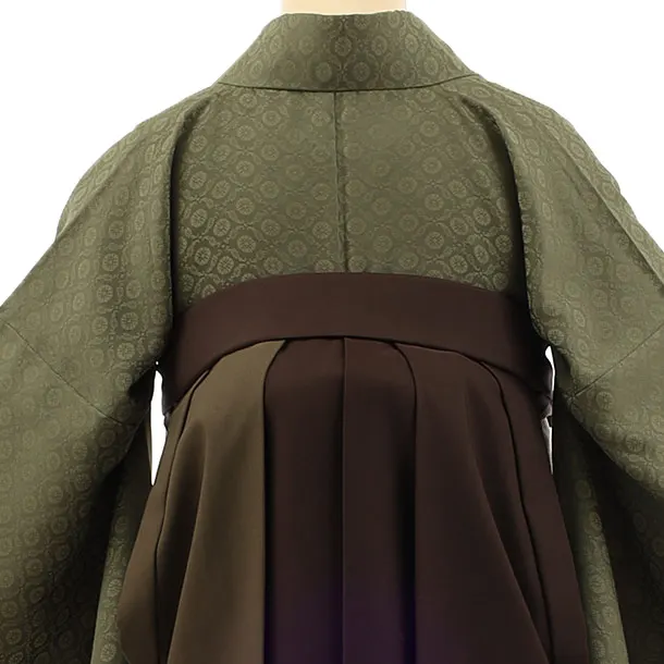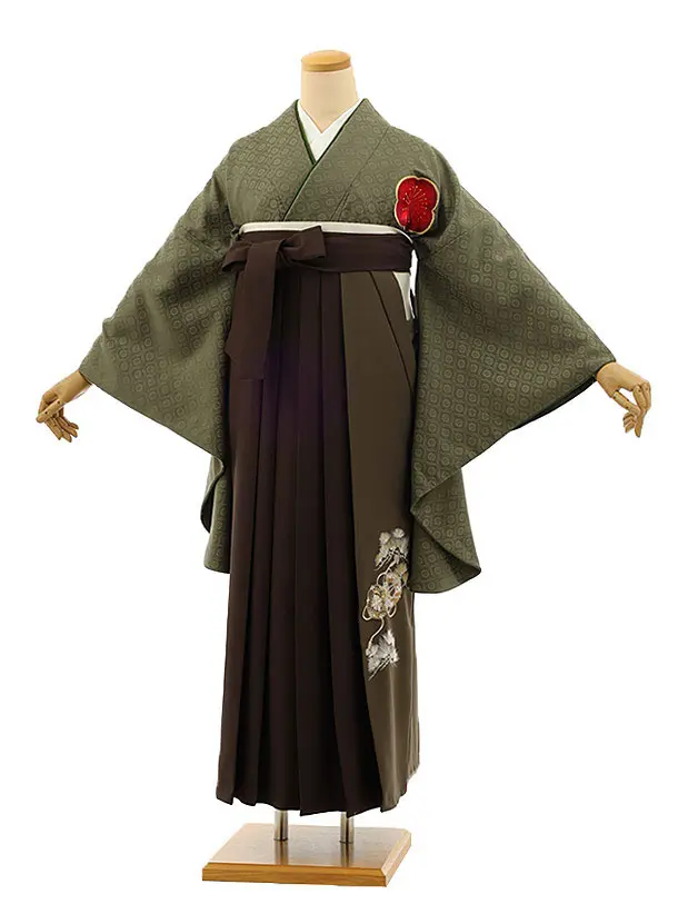 卒業袴レンタルh1119 モスグリーン梅 刺繍×茶モスグリーン袴