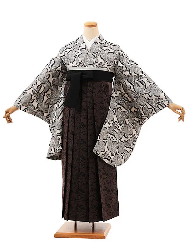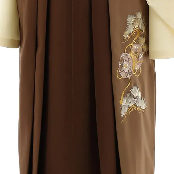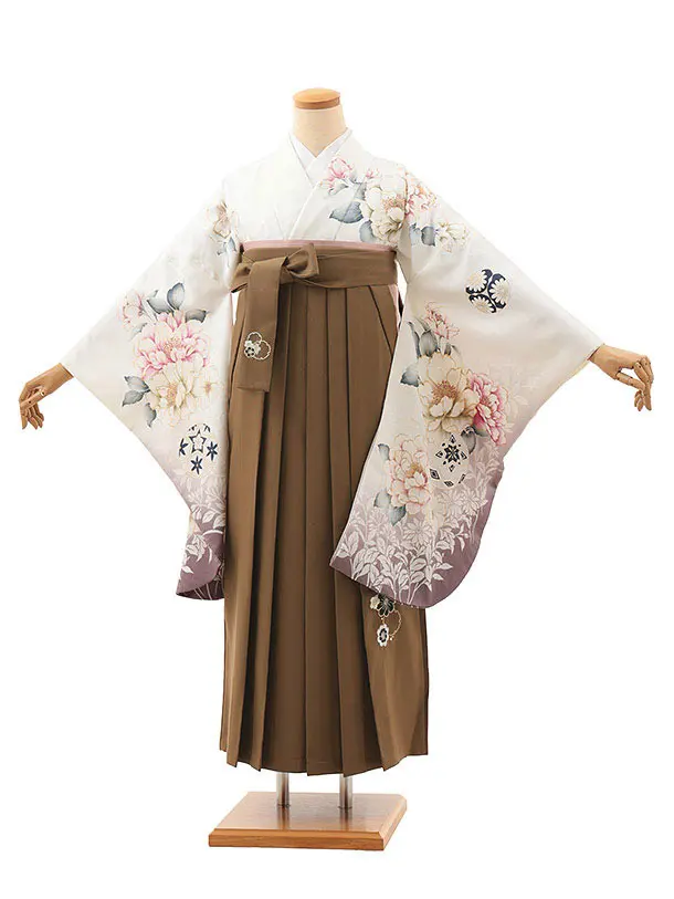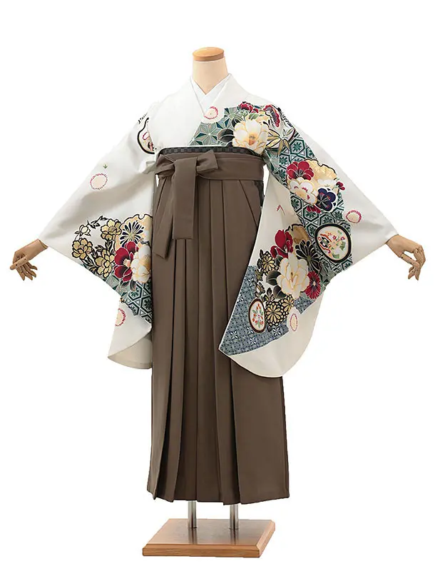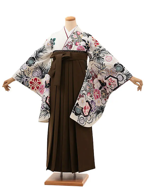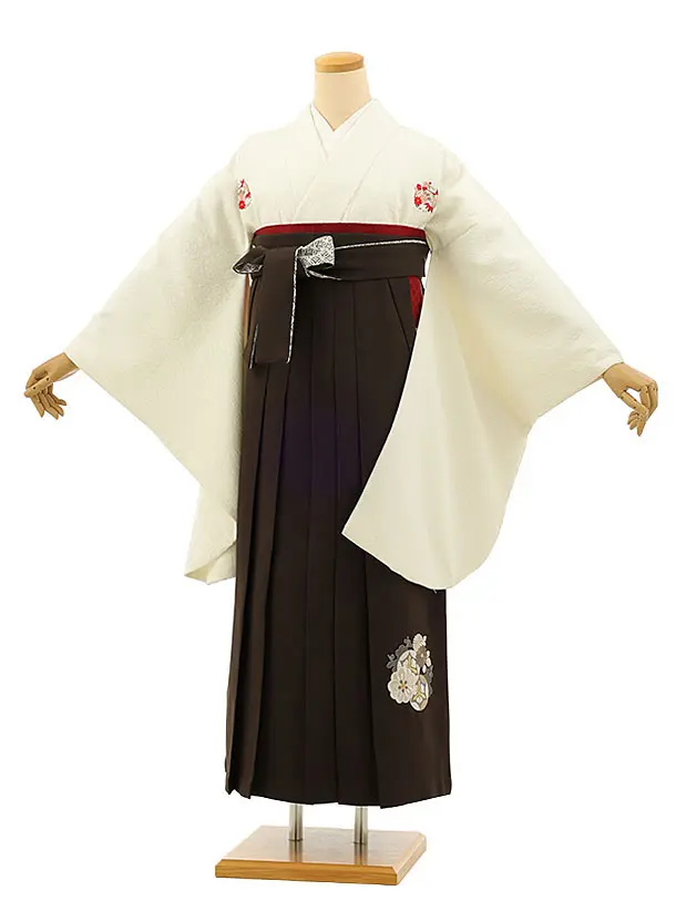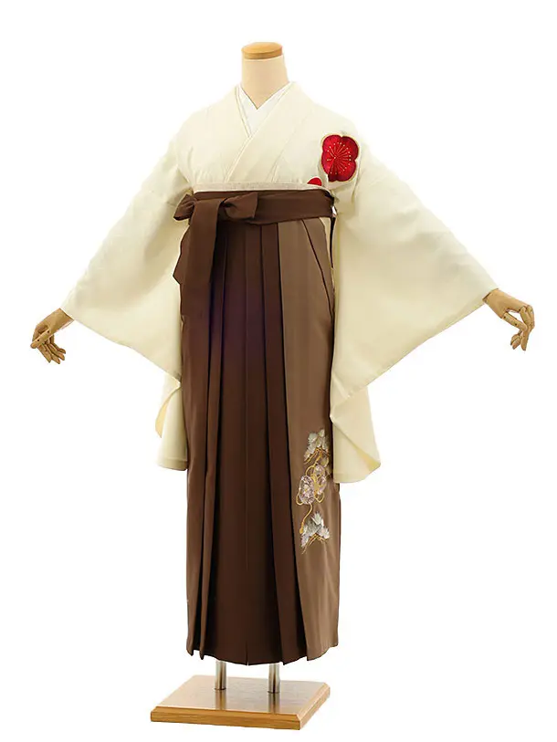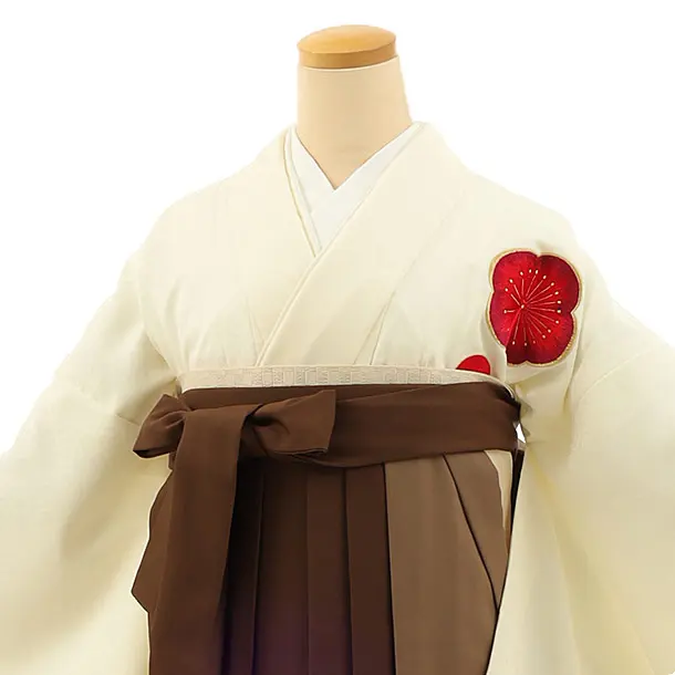 卒業袴レンタルh1120 クリーム色梅刺繍×モカ茶袴