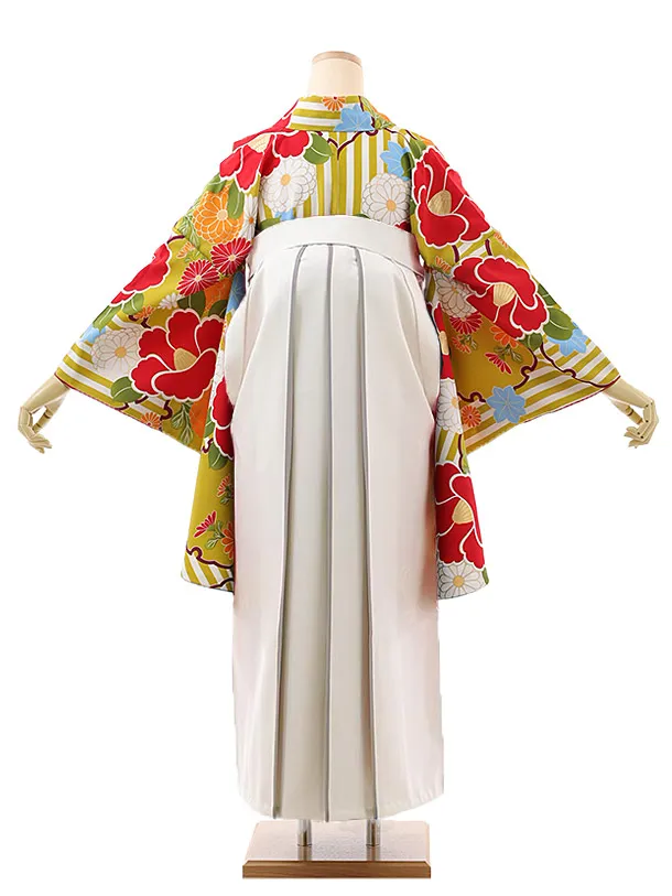 卒業袴レンタルh1122 からし色ストライプ椿×オフホワイト袴