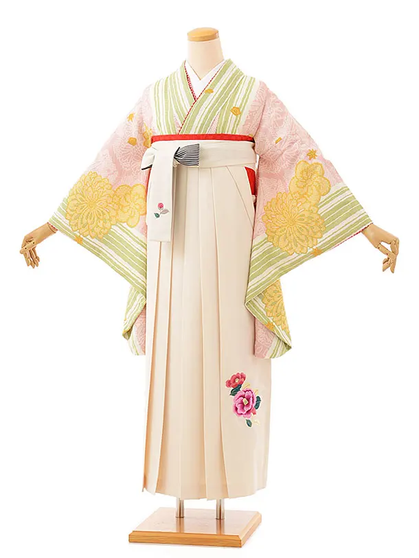 卒業式袴レンタルh1129 九重 ピンク疋田柄菊xクリーム袴