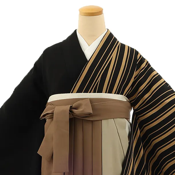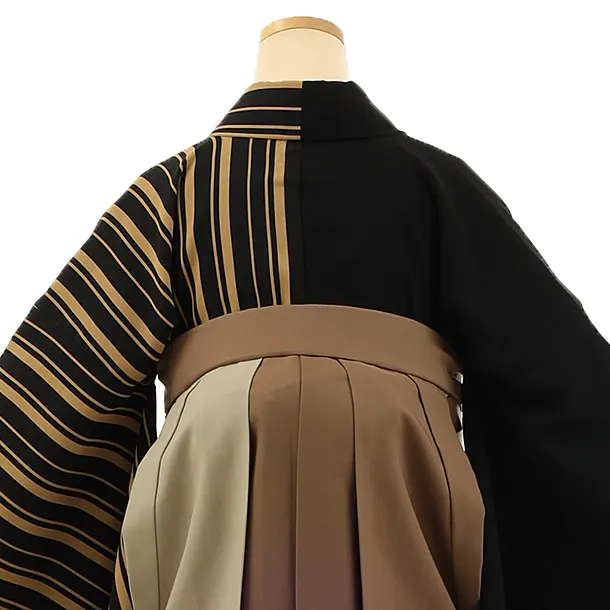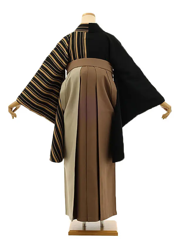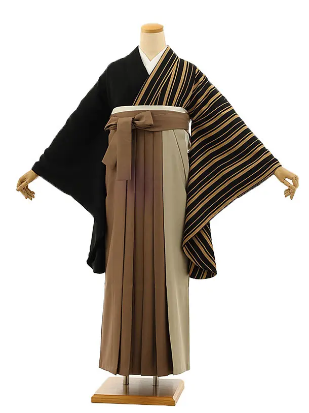 卒業式袴レンタル h1130 黒ベージュストライプ×モカ茶ベージュ袴