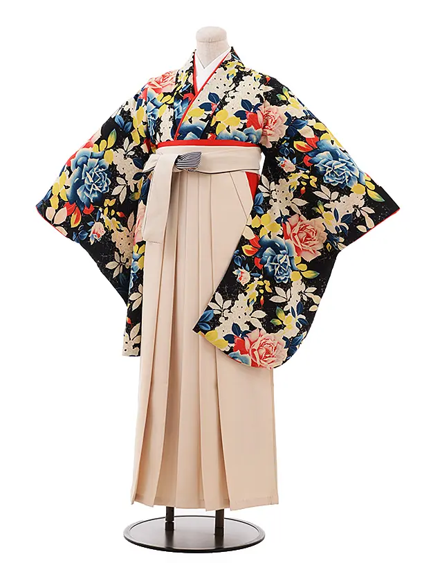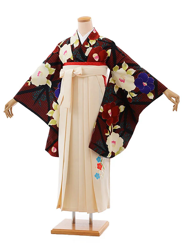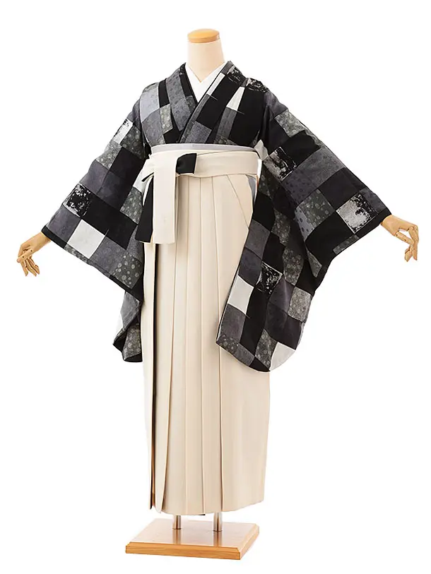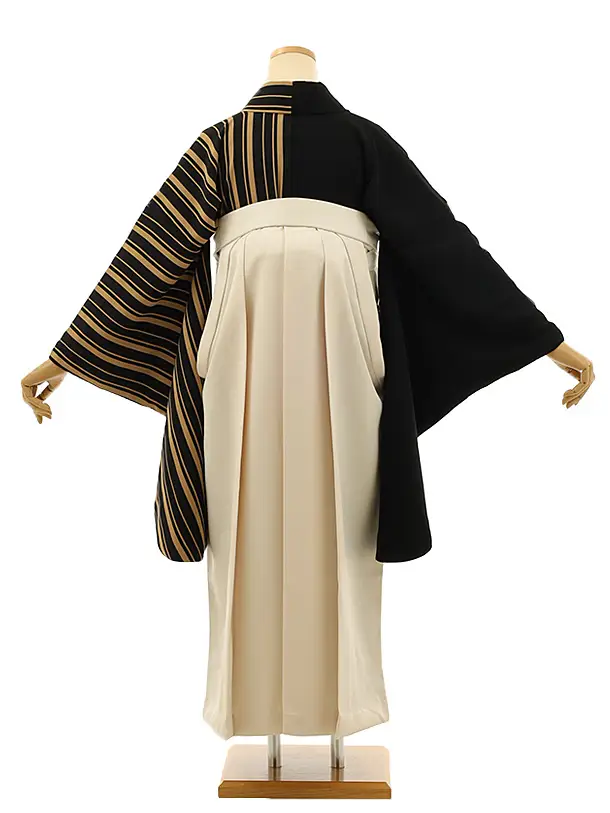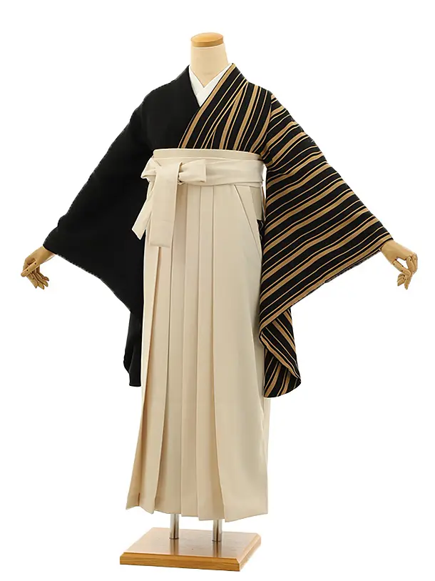 卒業式袴レンタル h1131 黒ベージュストライプ×アイボリー袴