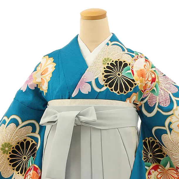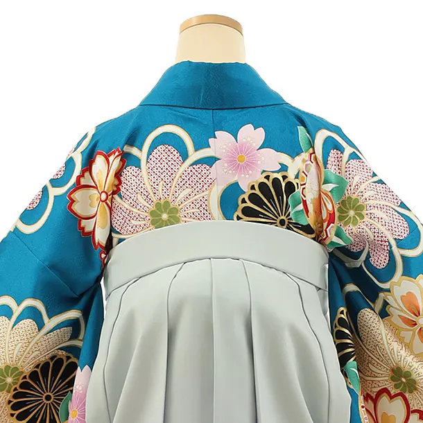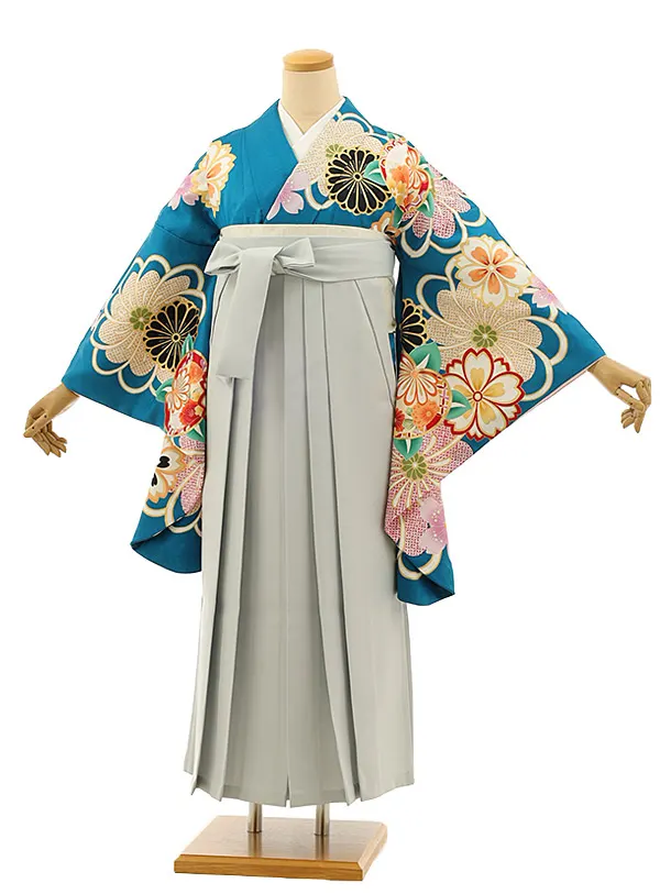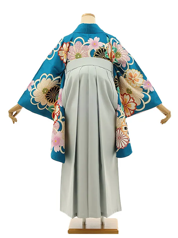 卒業式袴レンタル h1133 ブルー地菊桜×グレー袴