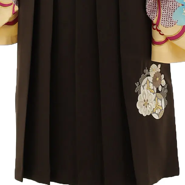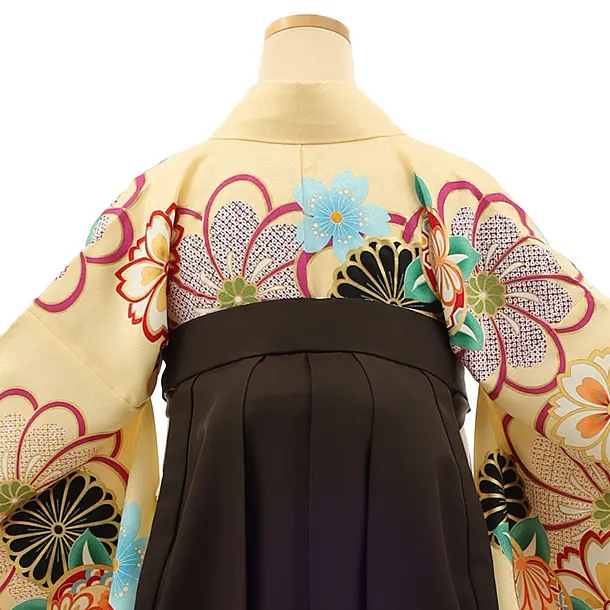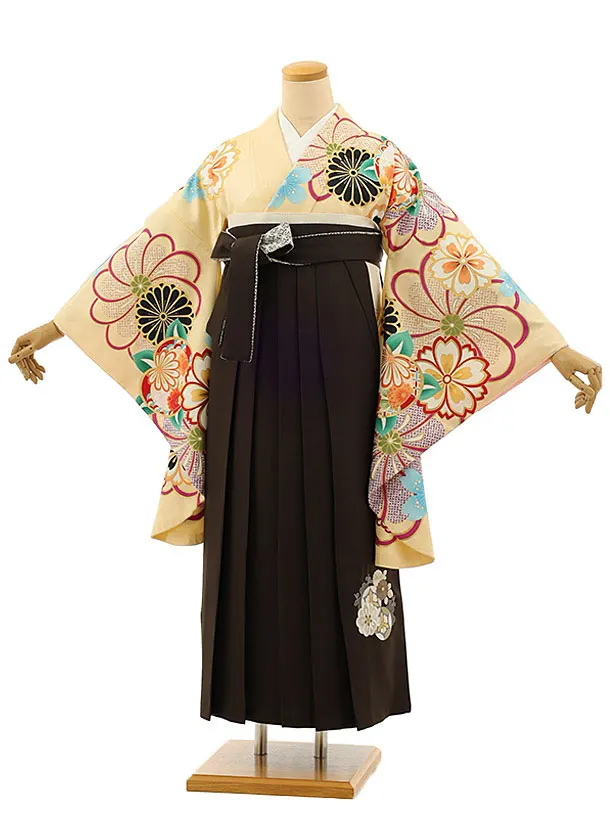 卒業式袴レンタル h1141 クリーム地 菊桜×こげ茶袴