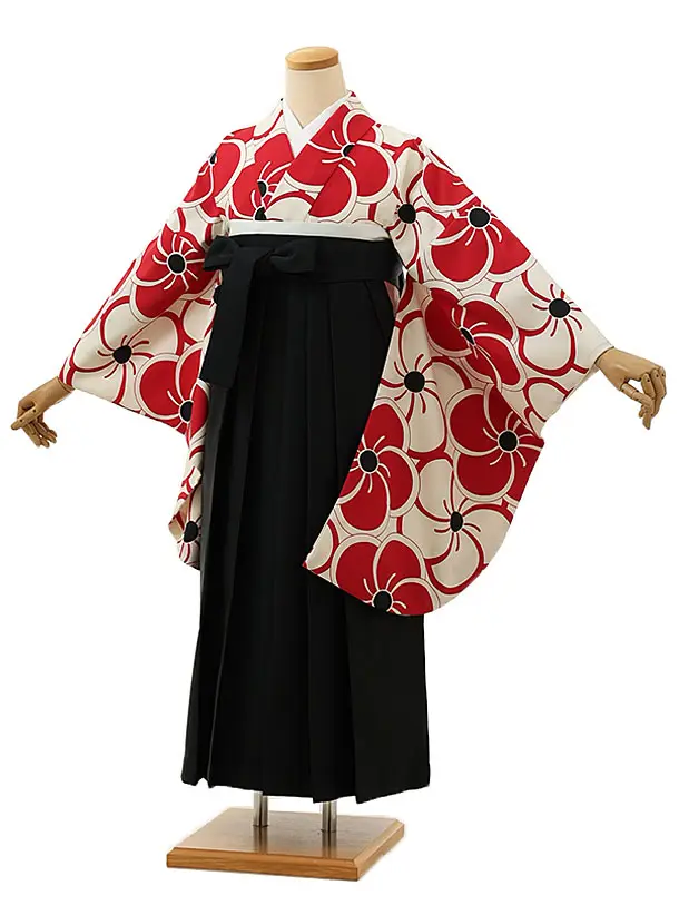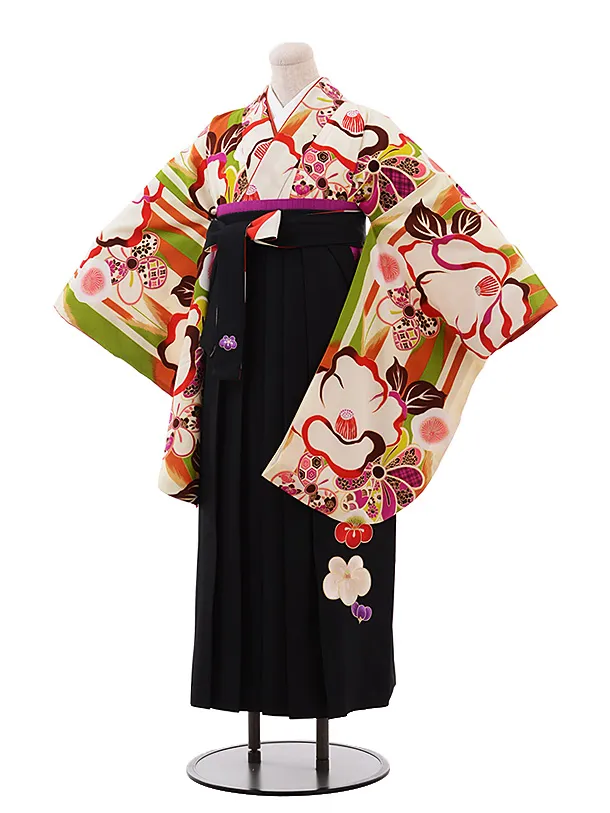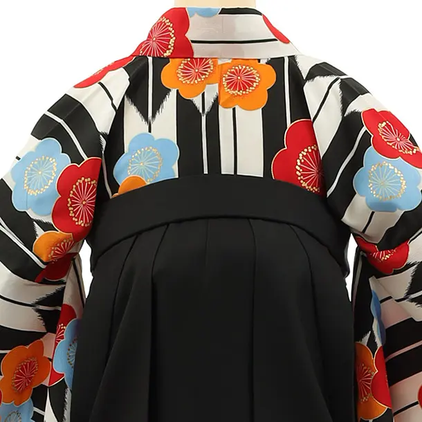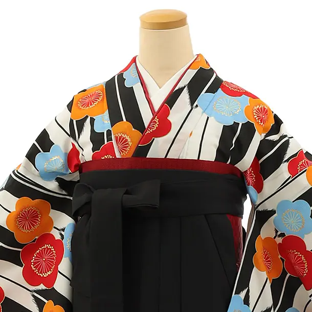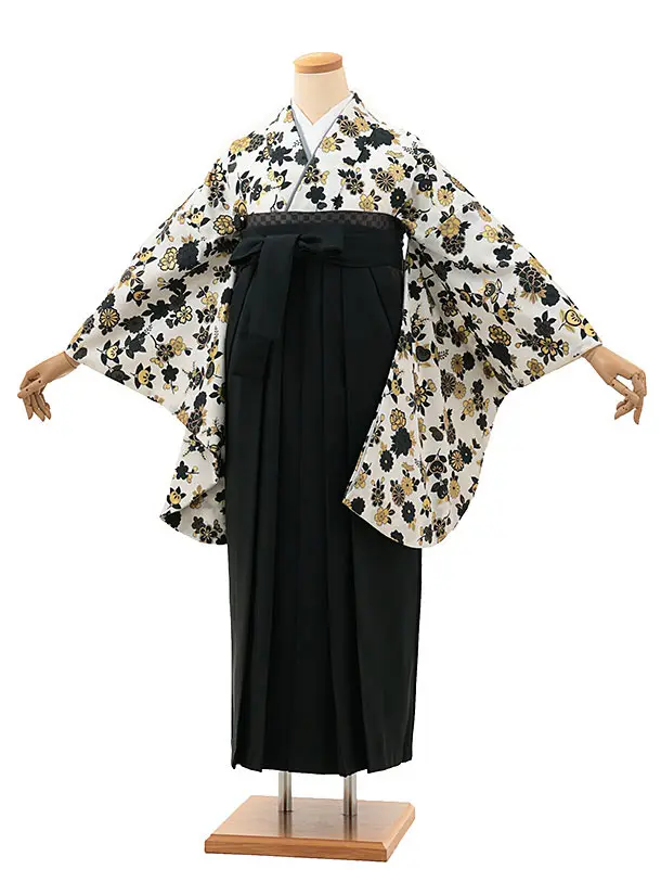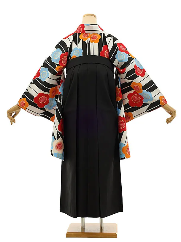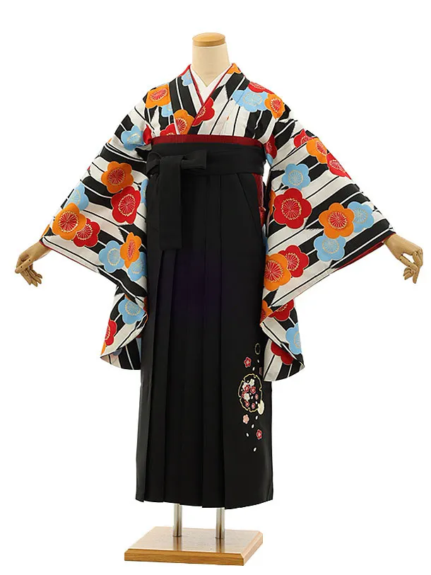 卒業式袴レンタル h1143 白黒矢柄梅×黒袴