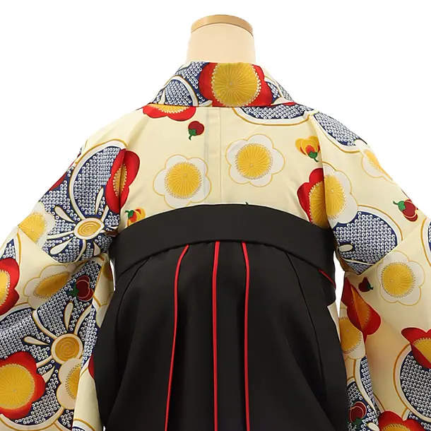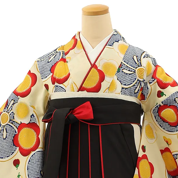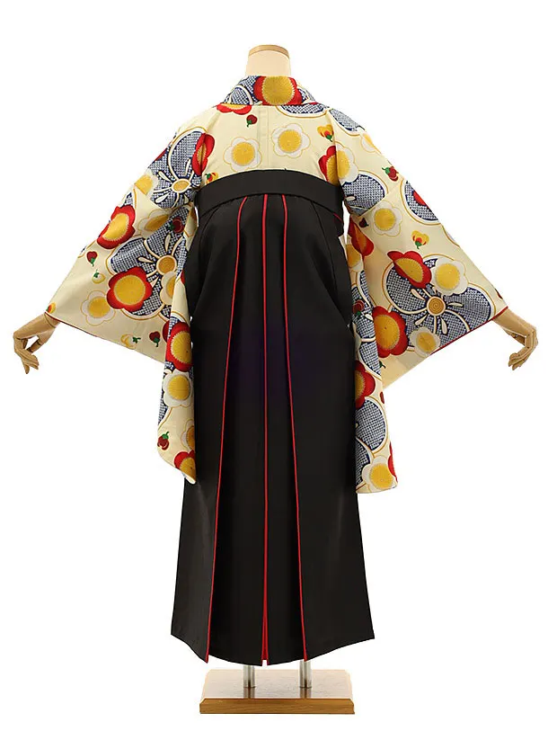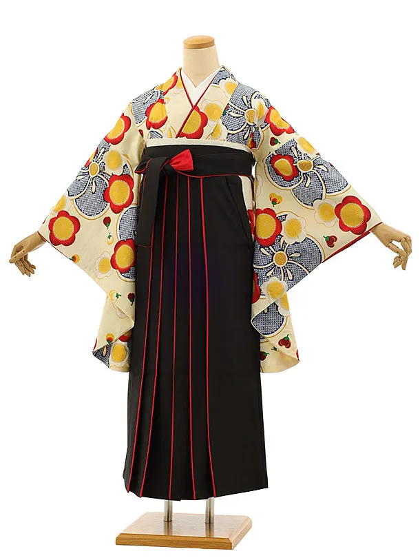 卒業式袴レンタル h1144 クリーム地梅×黒赤袴