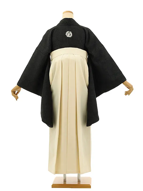 卒業袴レンタルh1152 黒地刺繍花紋×アイボリー袴