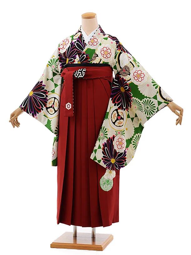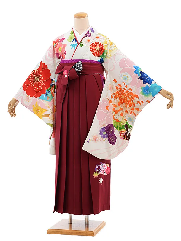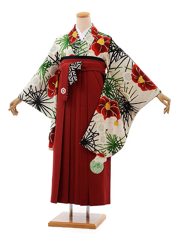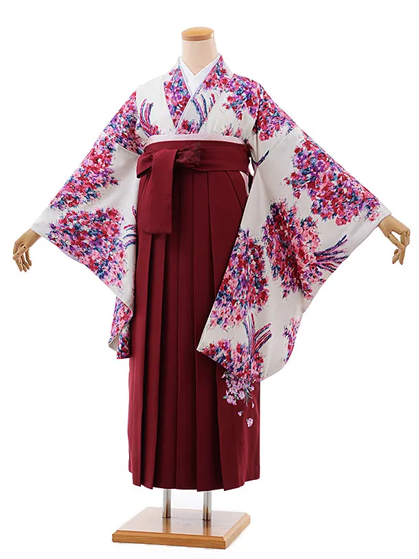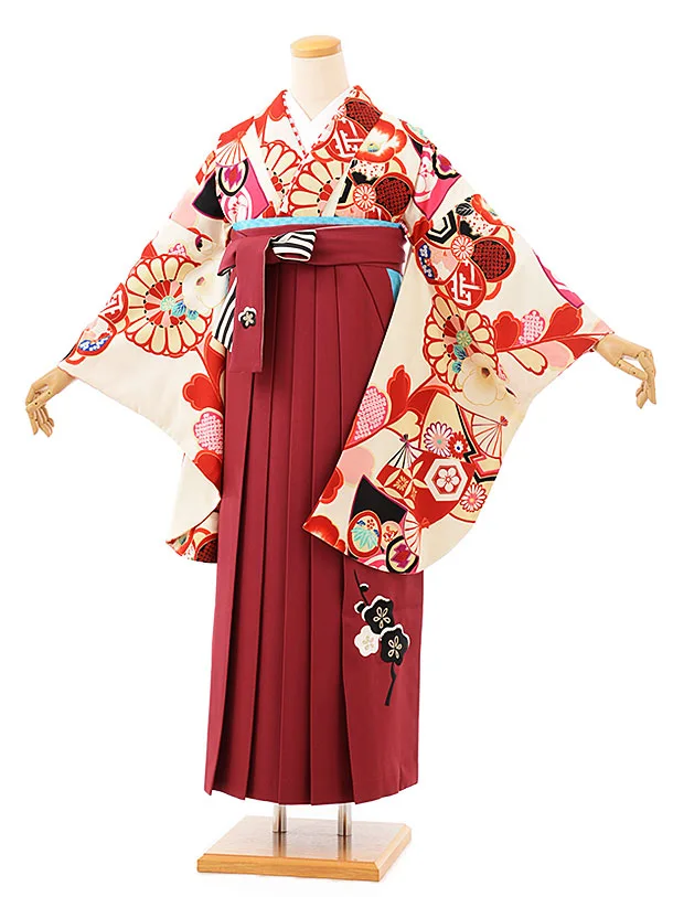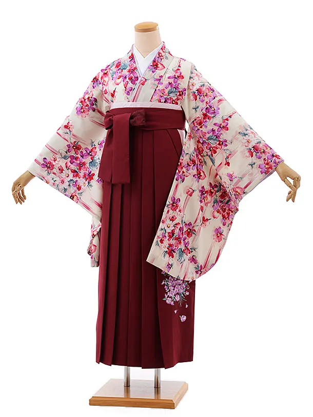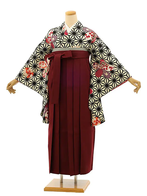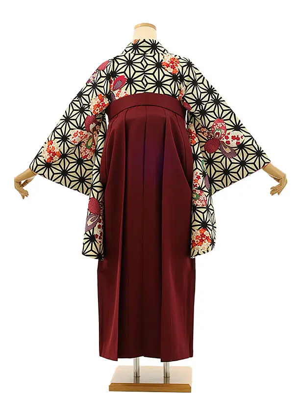 卒業袴レンタルh1157 アイボリー麻の葉桜×エンジ袴