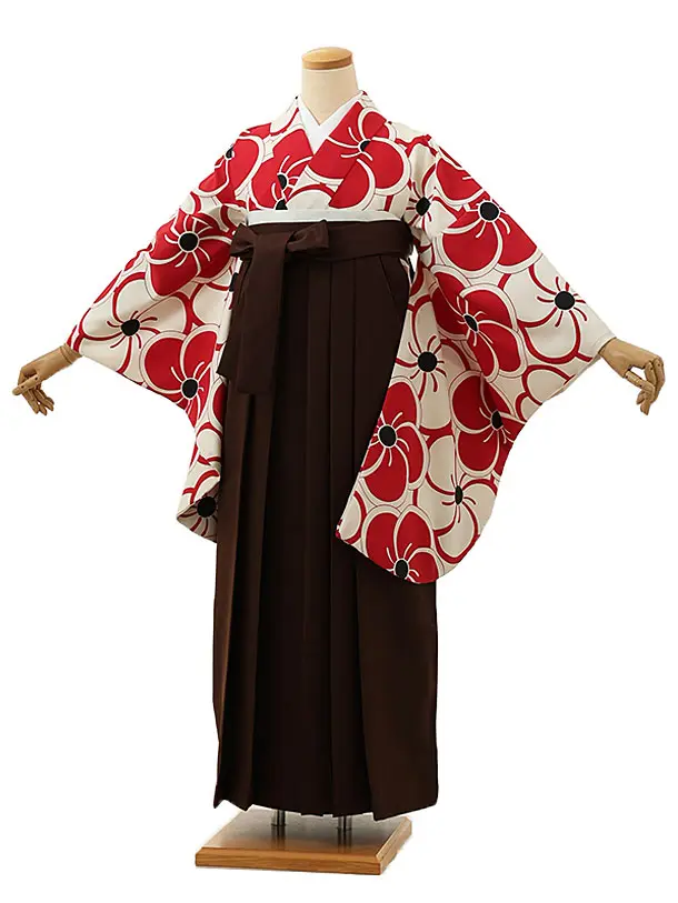 卒業袴レンタルh1160 アイボリー亀甲地模様×こげ茶袴