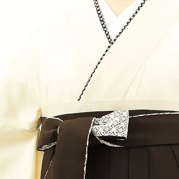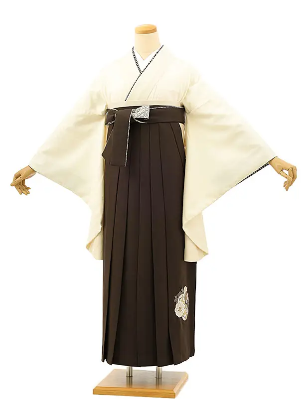 卒業袴レンタルh1161 アイボリー亀甲地模様×こげ茶袴