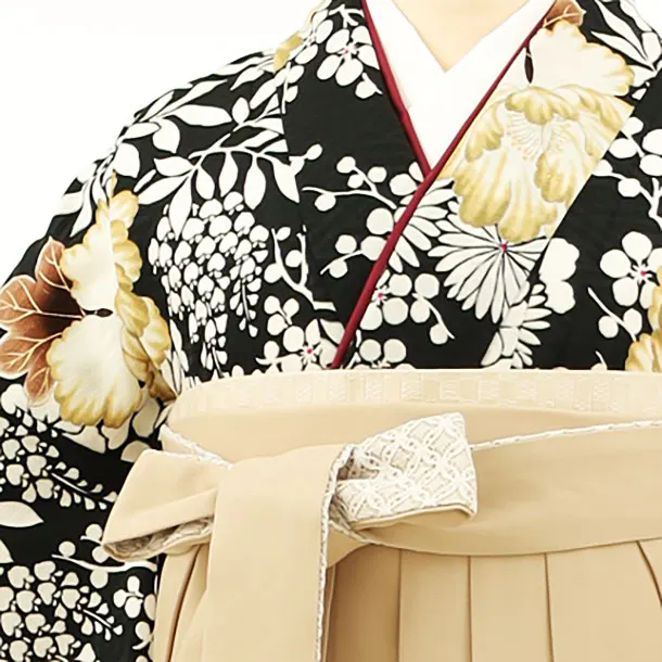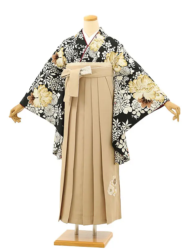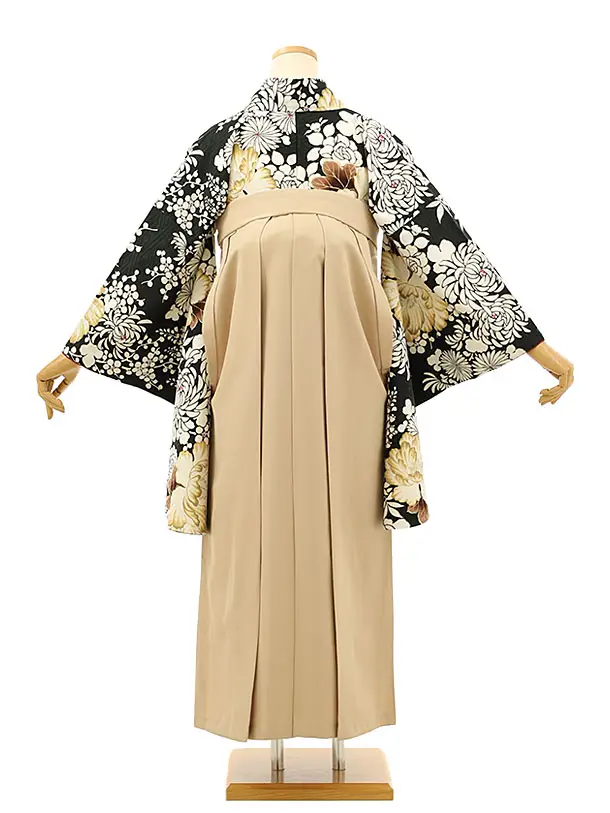 卒業袴レンタルh1166 黒地花丸紋×ベージュ袴