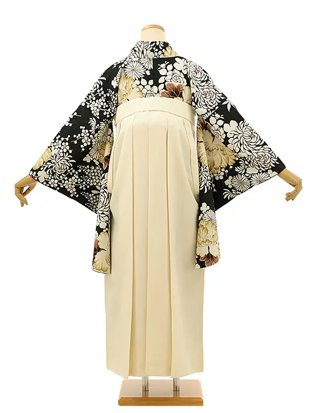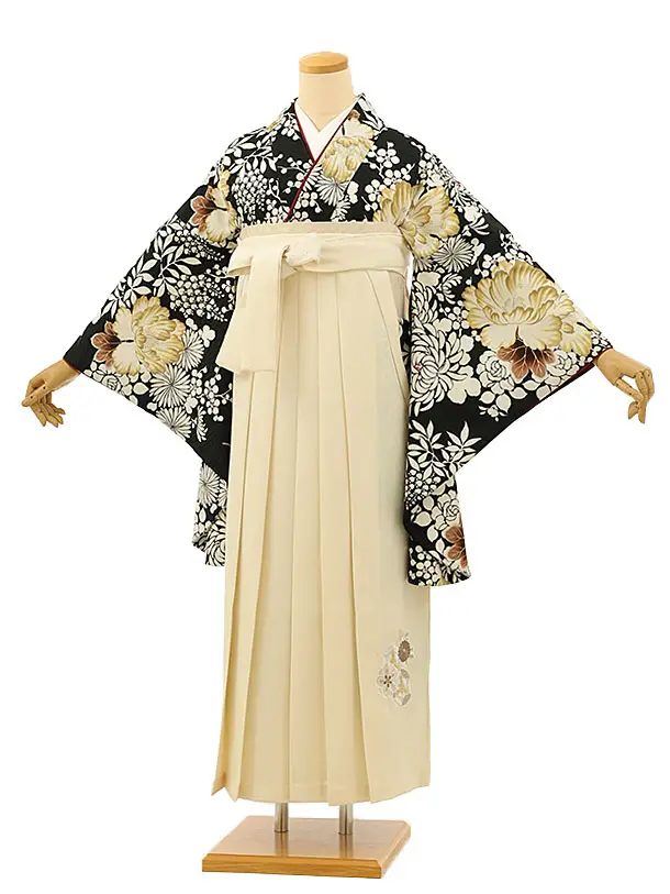 卒業袴レンタルh1167 黒地花丸紋×アイボリー袴