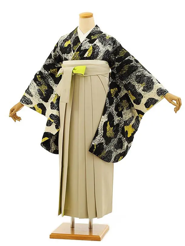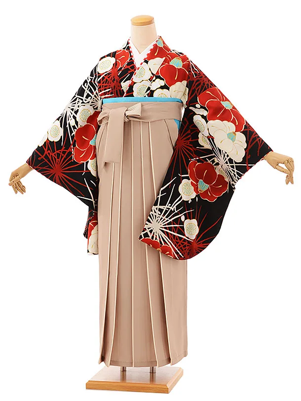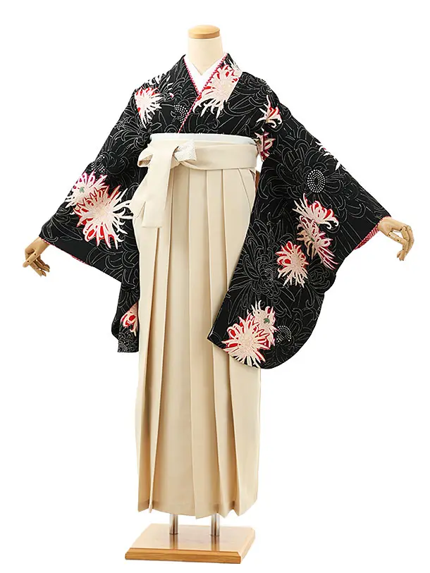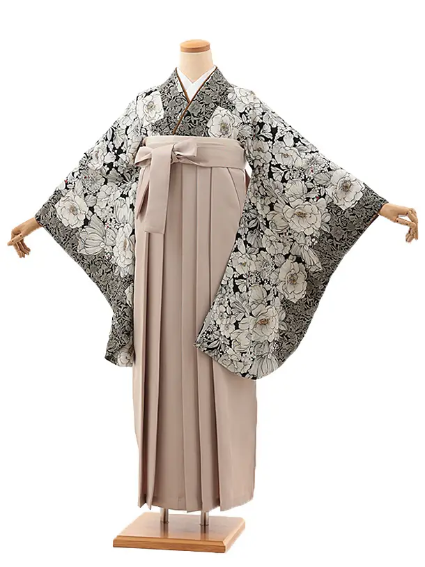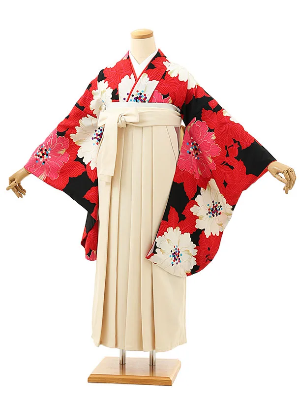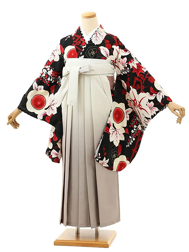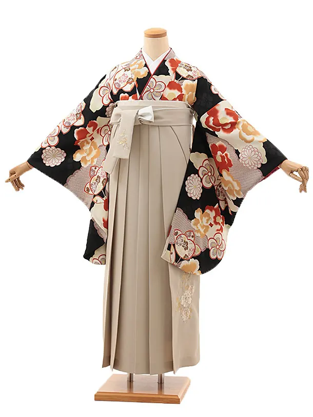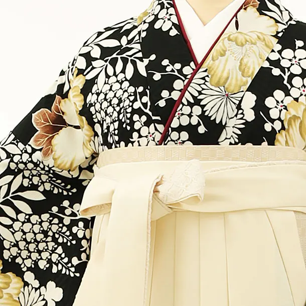 卒業袴レンタルh1168 黒地花丸紋×アイボリー袴