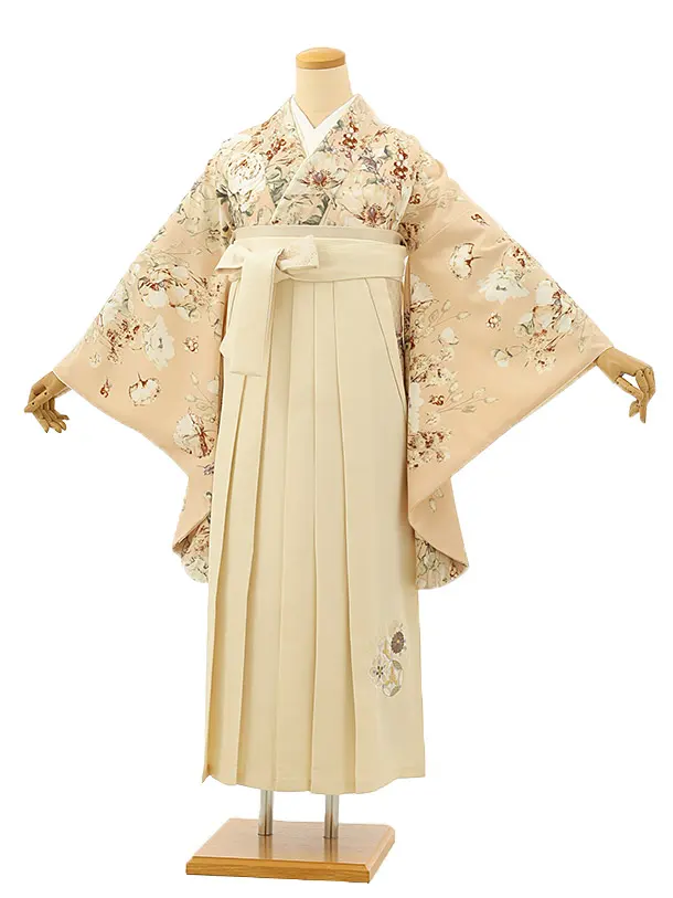 卒業袴レンタルh1170 ピンク水彩花柄×アイボリー袴