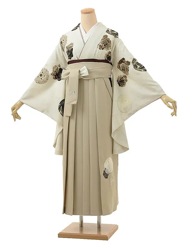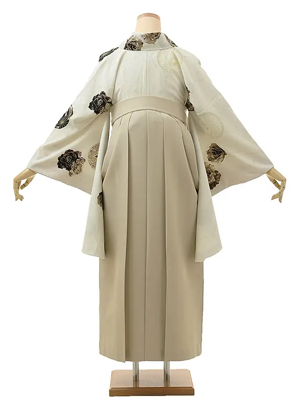 卒業式袴レンタル1187 JAPANSTYLEオフホワイト鞠に薔薇xアイボリー