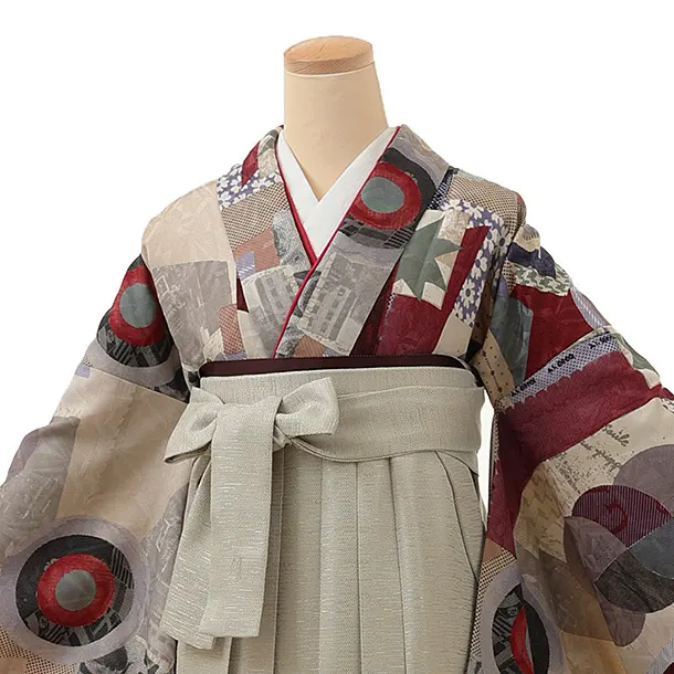 卒業式袴レンタル1196 モダンアンテナ MOVE幾何学紫xアイボリー