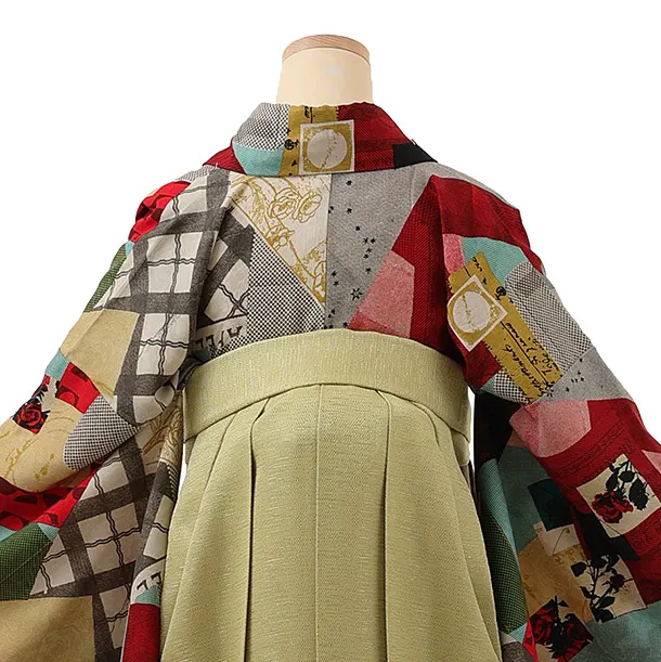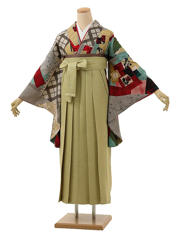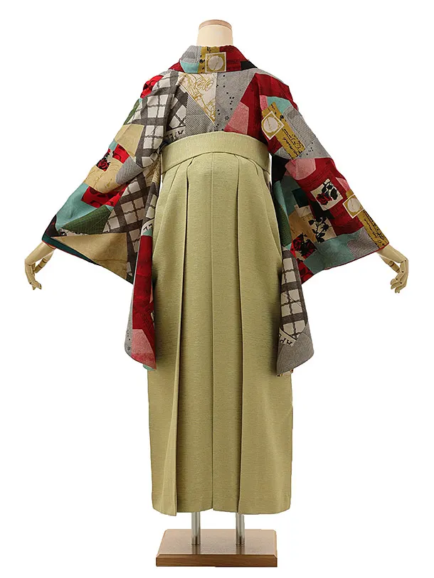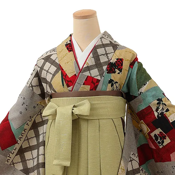 卒業式袴レンタル1200 モダンアンテナ 星間バラ赤xヒワ
