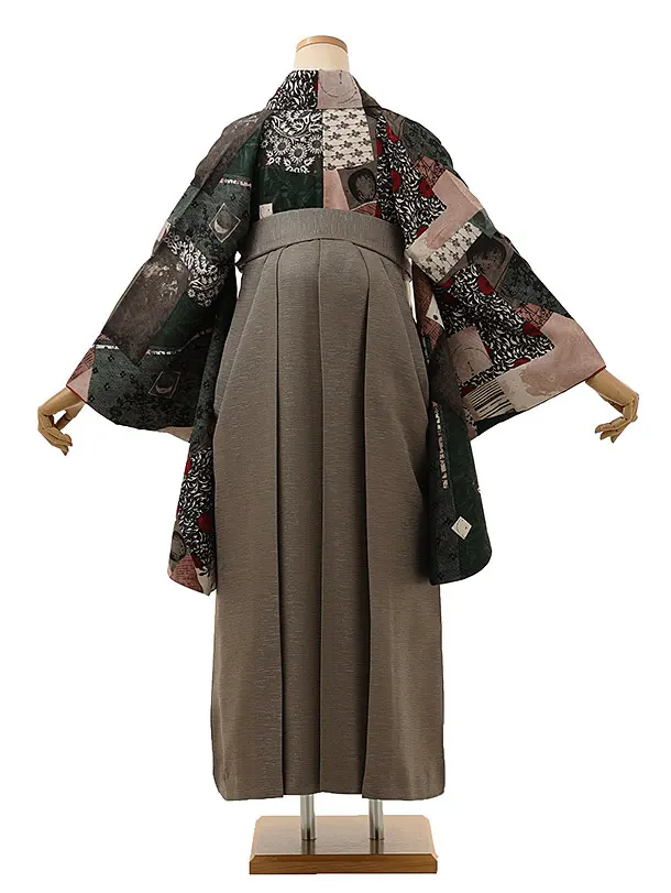 卒業式袴レンタル1203 モダンアンテナ タンポポダークグリーンxモカ茶