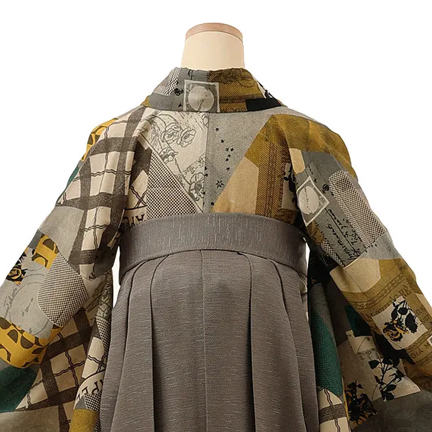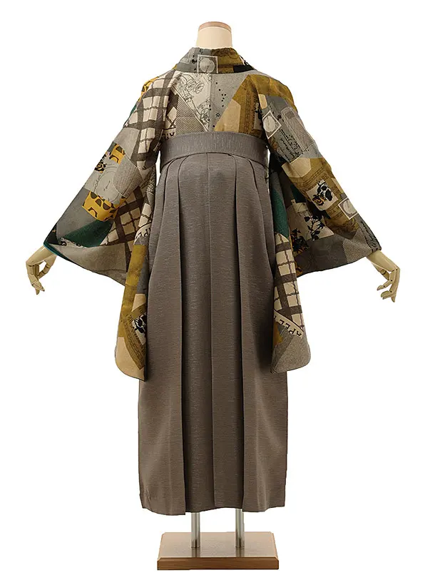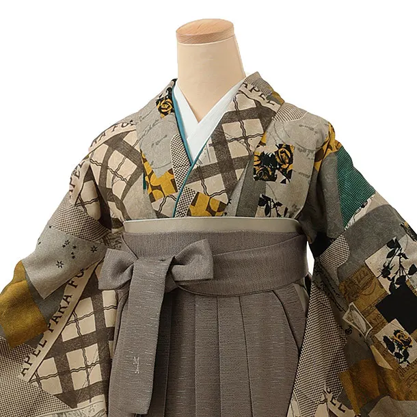 卒業式袴レンタル1205 モダンアンテナ 星間バラ黄xモカ茶