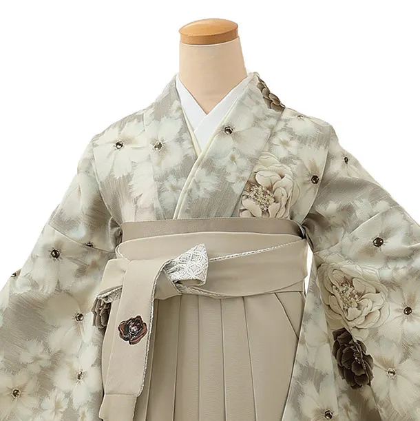 卒業式袴レンタル1211 紅一点 花水木薄茶xアイボリー