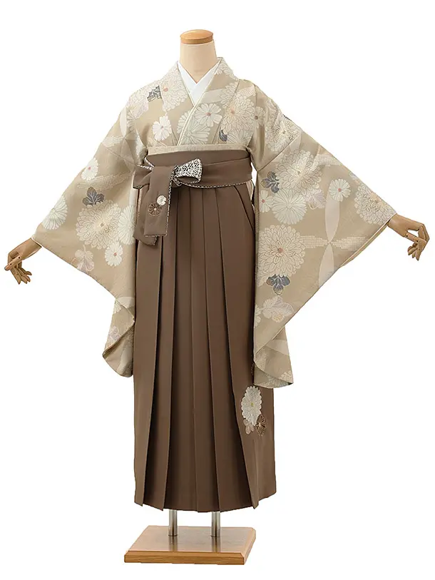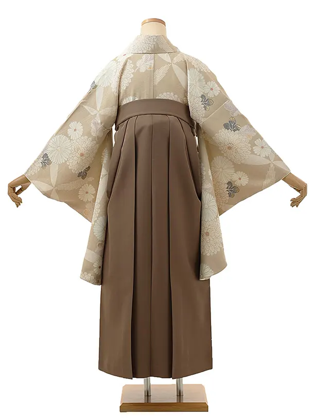 卒業式袴レンタル1222 九重 七宝に万寿菊ベージュx茶