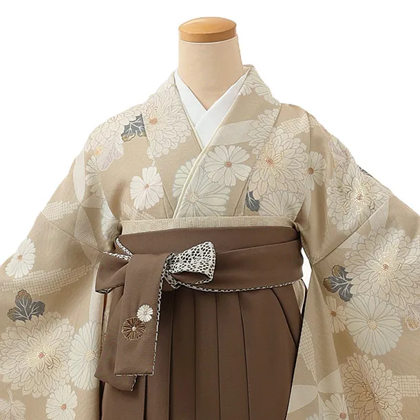 卒業式袴レンタル1223 九重 七宝に万寿菊ベージュx茶